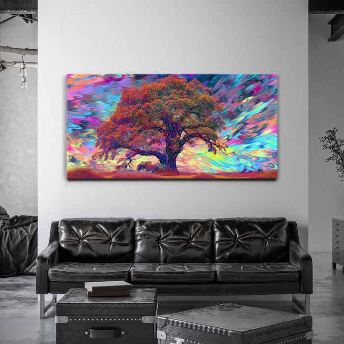 With its bold color splash and abstract style, "Psychedelic Tree" brings a mesmerizing touch to any room. Ideal for lovers of psychedelic and colorful abstract art, it makes a bold statement in spaces like living rooms, game rooms, or creative workspaces.
