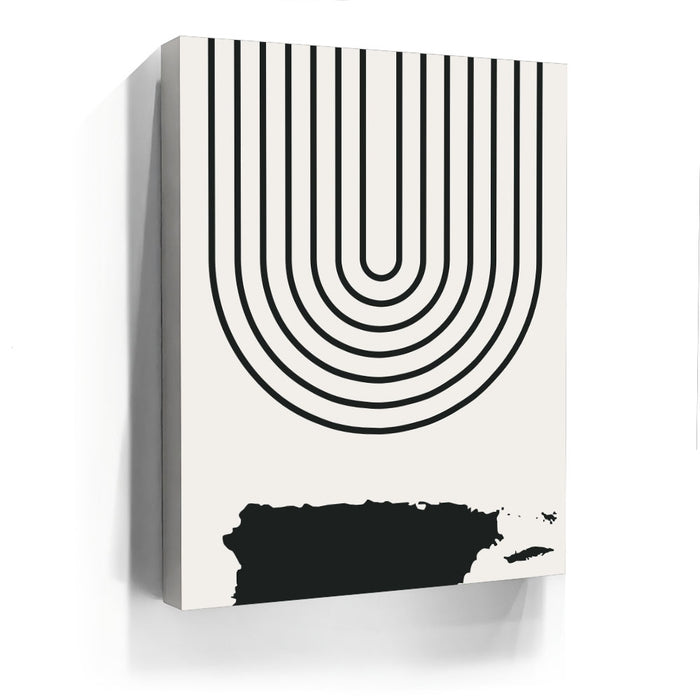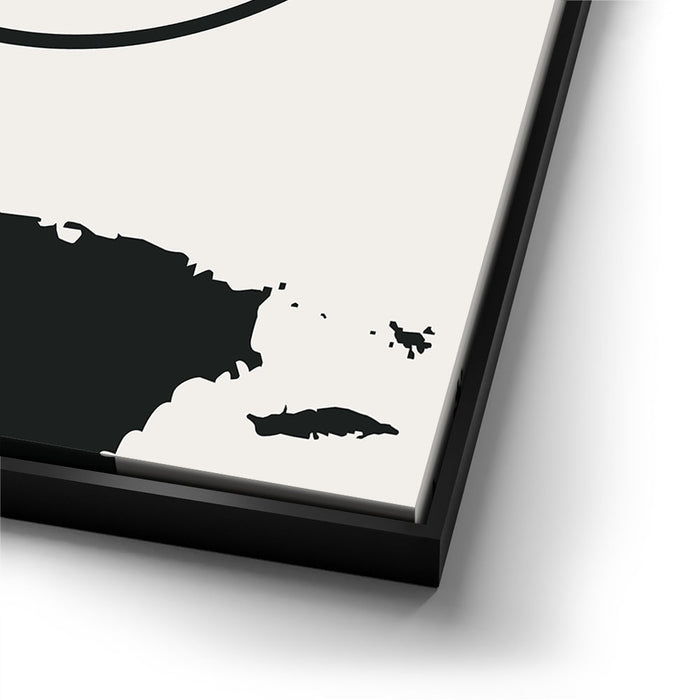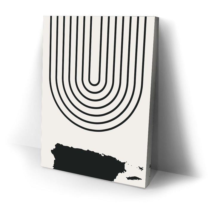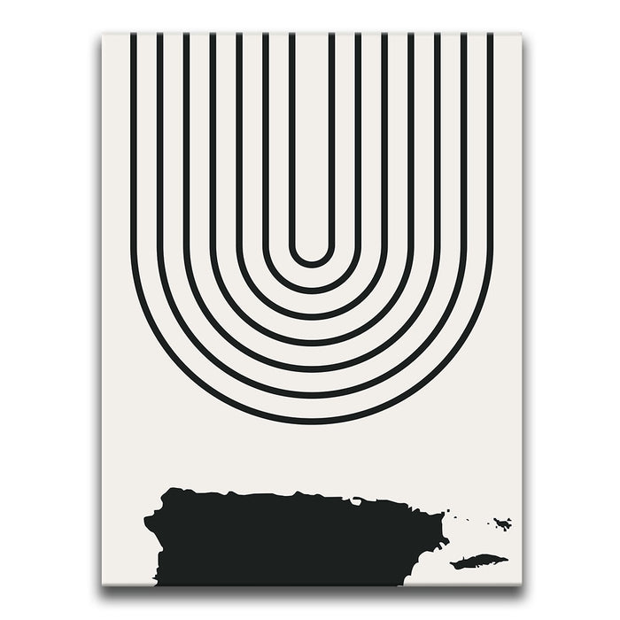 Puerto Rico I (Boho Style) by George Rosaly is a stunning abstract wall art piece that beautifully blends minimalism and boho style. Featuring geometric shapes, splatter effects, and bold black-and-white contrasts, this minimalist abstract artwork evokes a sense of modern sophistication. Its clean lines and geometrical shapes make it the perfect addition to any space seeking a touch of Bohemian and minimalist design.