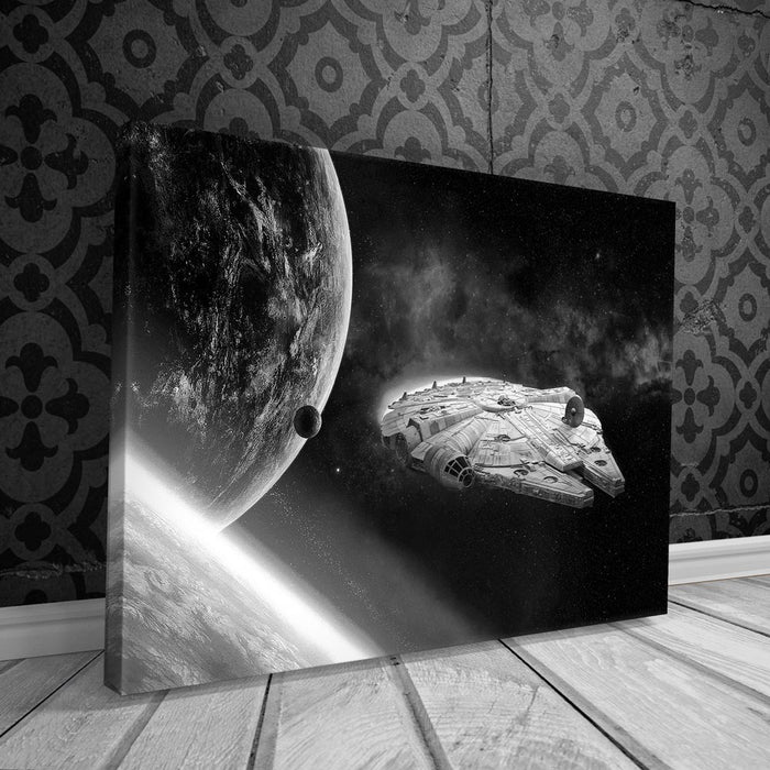Here’s our extraordinary Star Wars-inspired artwork, meticulously crafted to capture the awe-inspiring moment when the Millennium Falcon prepares to jump to lightspeed.