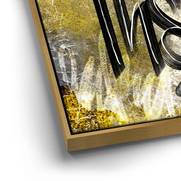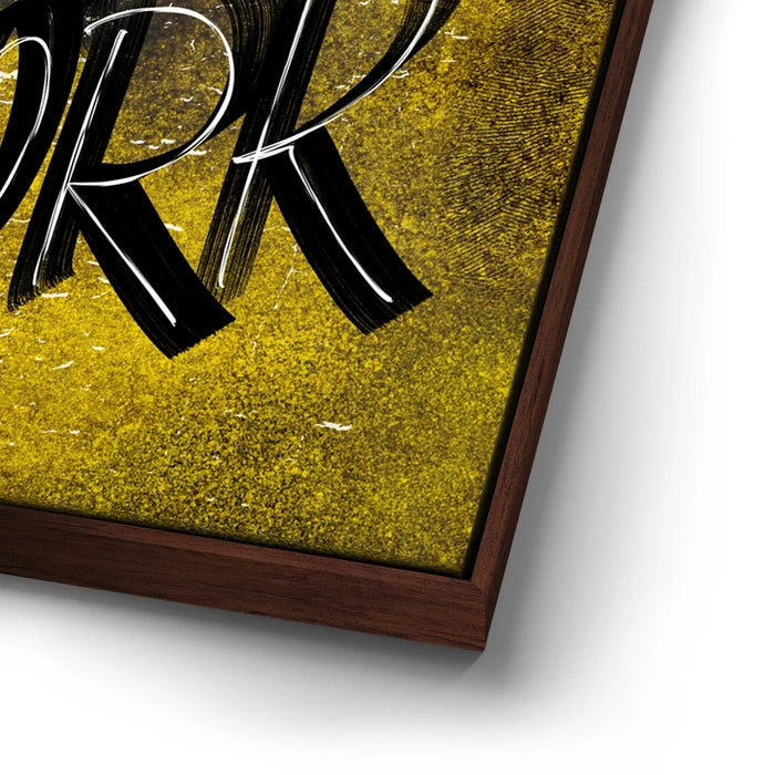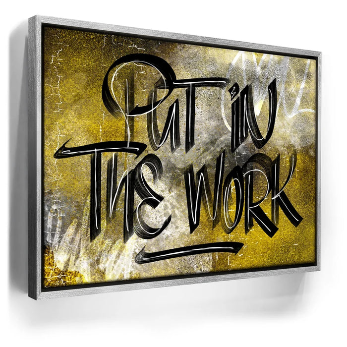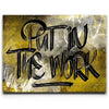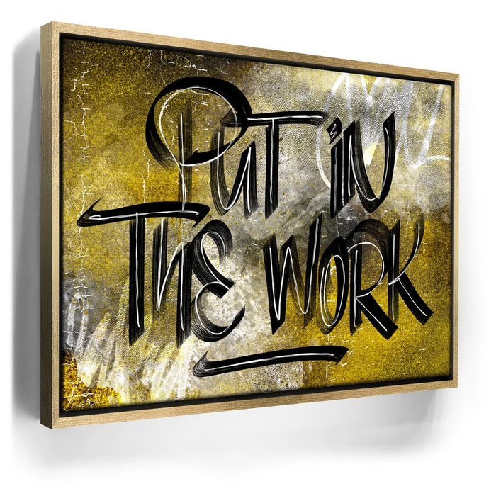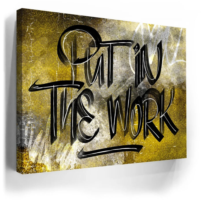 Put In The Work – Calligraphy (Black Text) is a bold and motivational graffiti-inspired artwork that captures the power of hustle and dedication. With its striking gold brush lettering layered over a gritty black-and-gray textured background, this piece demands attention and fuels ambition. The dripping paint and distressed finish give it a raw, urban energy that speaks to perseverance and grit.