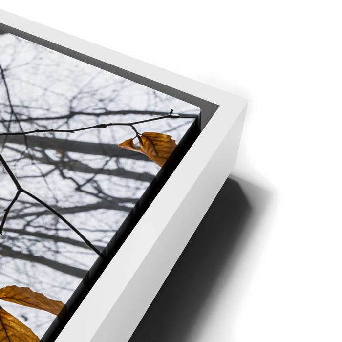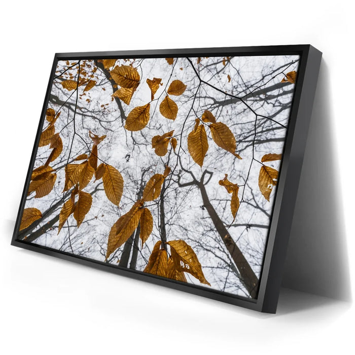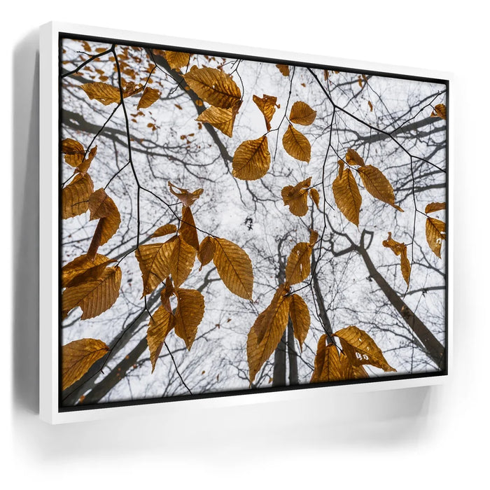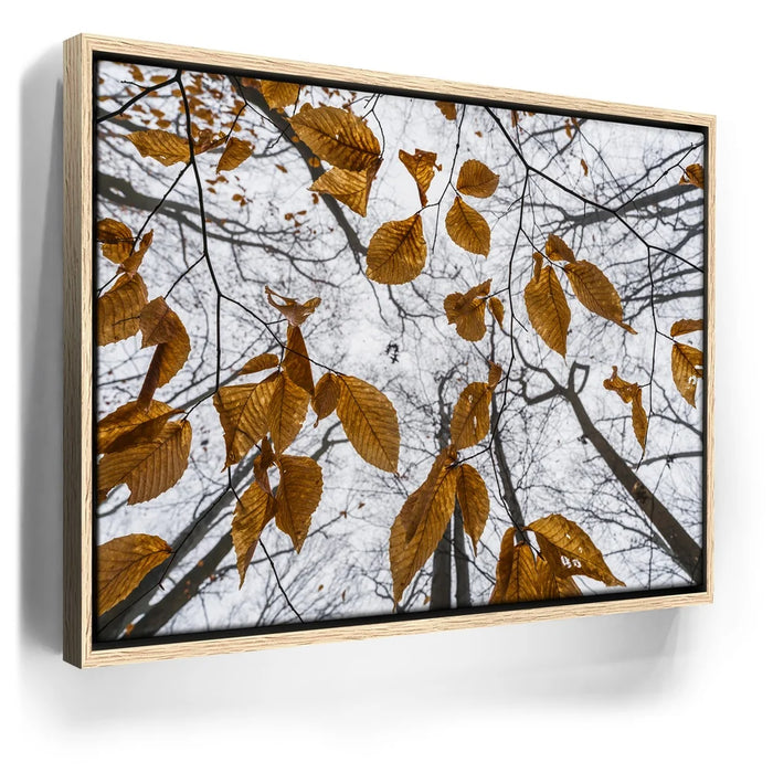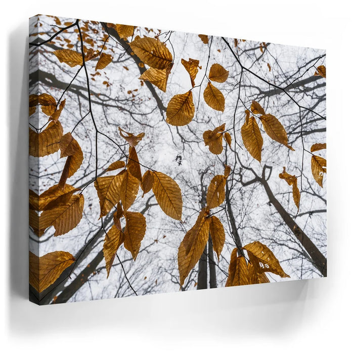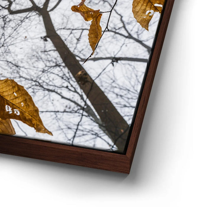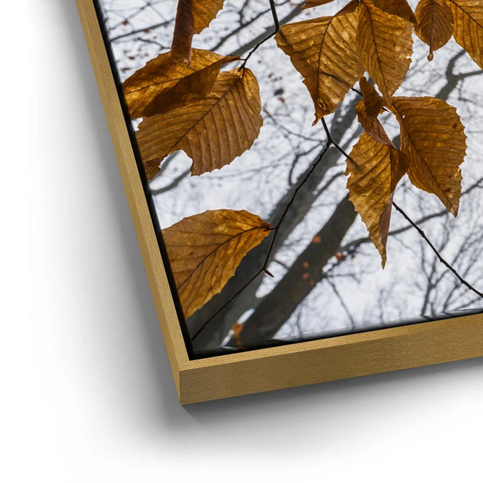 "Reaching Skyward" by Barbarossa captures the final embrace of autumn as golden leaves cling to slender branches beneath a pale winter sky. The upward perspective pulls the viewer into a quiet moment between seasons, where color and light linger in graceful balance.