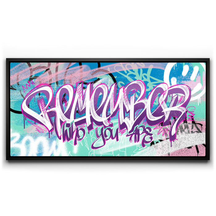 With its impactful calligraphy and graffiti-inspired design, "Remember Who You Are" combines urban art and powerful words to inspire success and positivity. This piece is ideal for those seeking motivation and a reminder of self-worth and identity in their home decor.