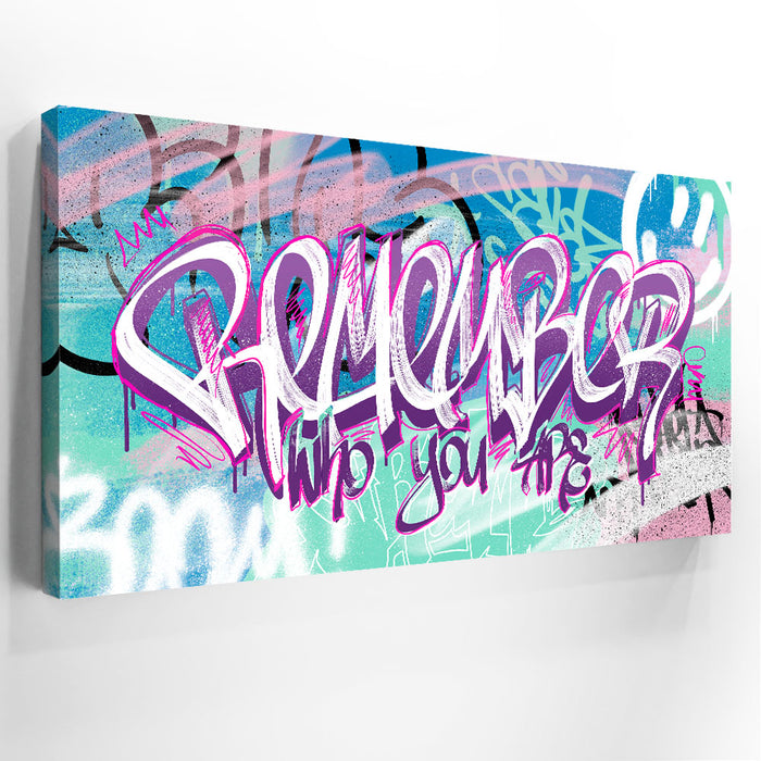 "Remember Who You Are - Graffiti" delivers an uplifting and motivational message with a striking graffiti style. This artwork features bold typography, reminding viewers to stay grounded and true to themselves. Perfect for any living room or bedroom, this piece brings a positive and empowering energy to any space.