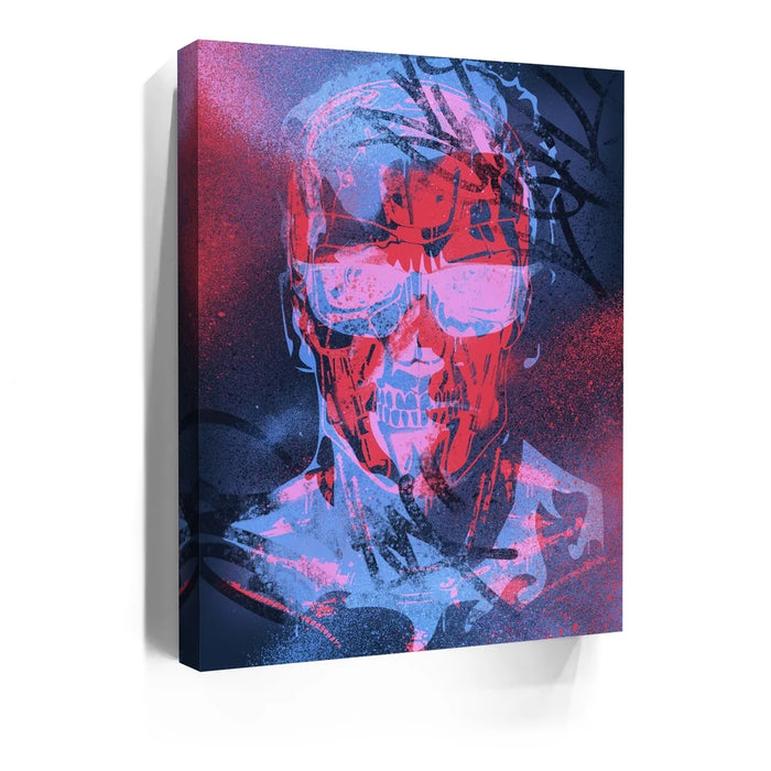 Rise of the Anaglyph Machine is a bold fusion of futuristic energy and street-style rebellion. With vivid layers of electric red and icy blue, this striking artwork blends human and mechanical elements into a hauntingly powerful form. The graffiti-style textures and anaglyph color separation evoke movement, distortion, and digital tension—symbolizing the collision between man and machine. It’s a mesmerizing visual that captures the raw pulse of technology, evolution, and identity in the modern age.