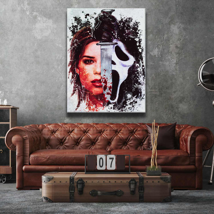 "Scream Canvas Set" by Stella Ygris brings the chilling allure of the *Scream* horror franchise to life in a vivid, pop art-inspired portrait. Featuring Ghostface and iconic characters like Sidney Prescott and Gale Weathers, this canvas set captures the intensity, suspense, and horror of this classic slasher. The combination of splatter, realism, and posterized style creates a striking visual impact, perfect for fans of *Scream* and Halloween-inspired art.