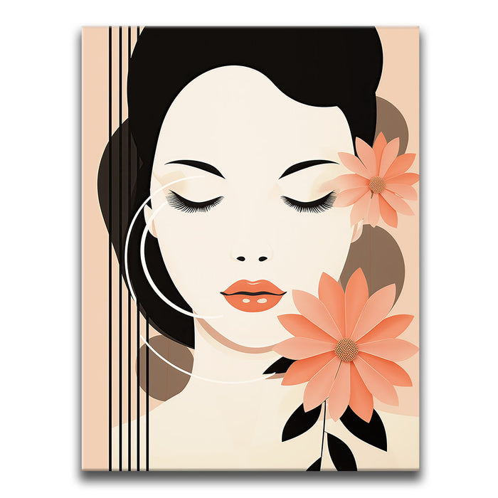 “Serenity Beauty” by Stella Ygris is a captivating portrait of a beautiful woman surrounded by vibrant orange flowers and colorful petals. This expressive artwork celebrates feminine beauty and tranquility, using a radiant palette that highlights the subject’s elegance and grace.