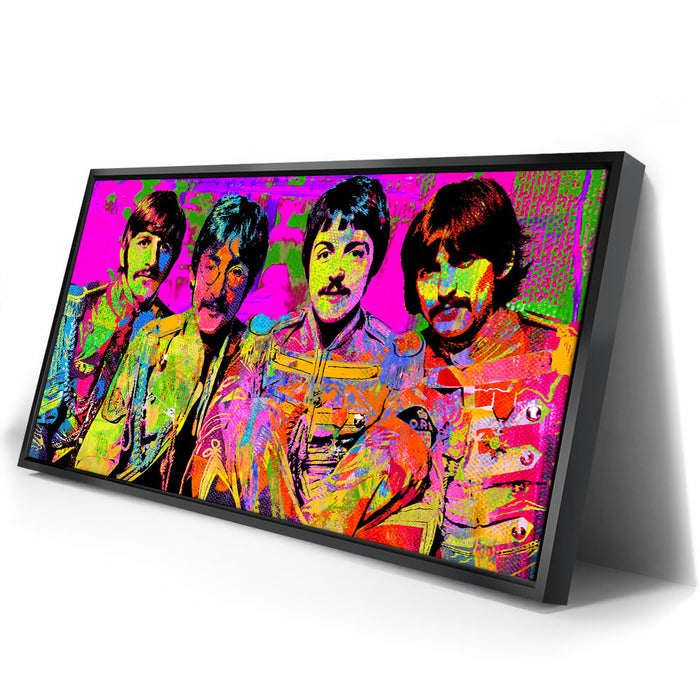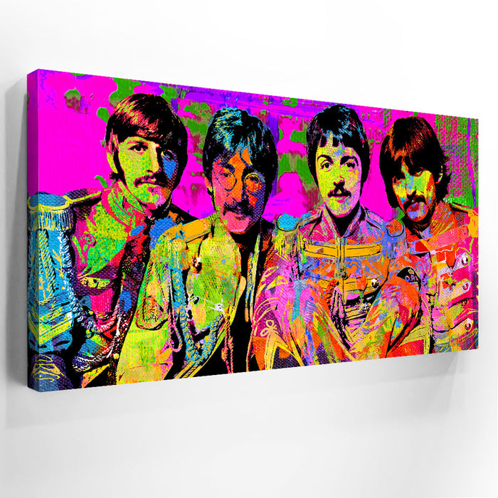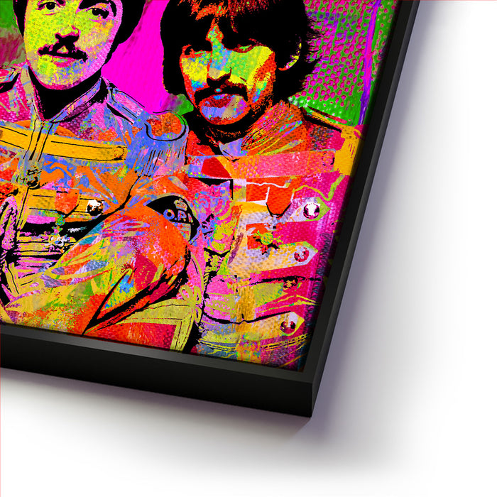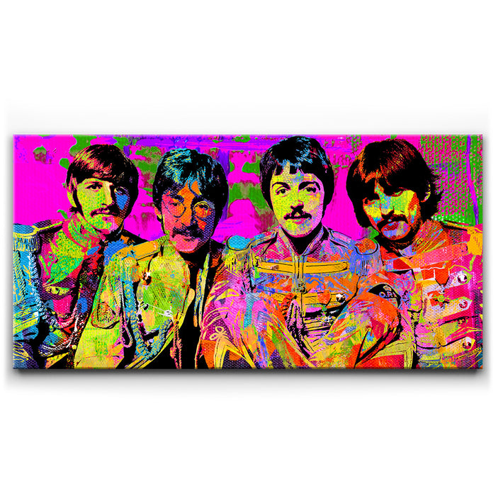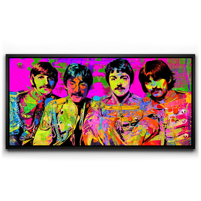 "Sgt. Pepper Canvas Set" by Stephen Chambers is a vibrant pop art tribute to one of the most iconic albums in rock music history. Featuring a bold combination of pink and green tones with a splatter and stencil style, this colorful piece captures the essence of The Beatles and their legendary "Sgt. Pepper's Lonely Hearts Club Band."