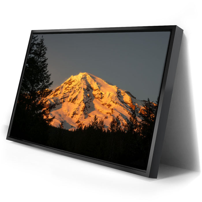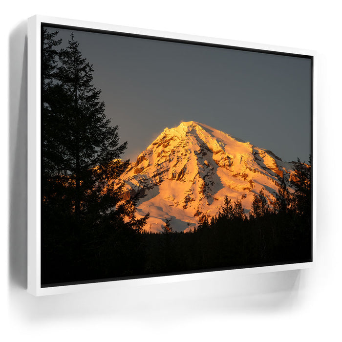 “Shades of Gold - Mt. Rainier” by Daniel Heck captures the breathtaking sight of Washington’s tallest peak bathed in golden light at sunset. The snow-covered slopes of Mount Rainier glow with fiery tones as the last rays of the day illuminate its rugged ridges and surrounding forest.