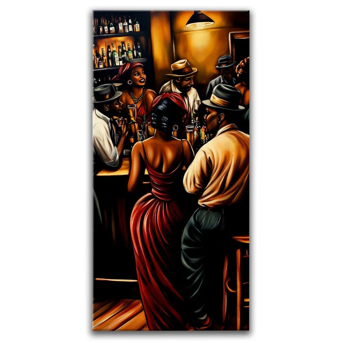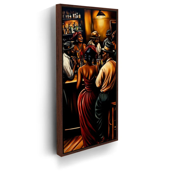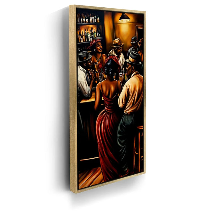 “Spirits In Session” by Kandise King captures the electricity of a golden-era night — the clink of glasses, smooth jazz floating through the air, and laughter echoing between friends dressed in their finest. The warm amber tones and vintage fashion invite you into a world of class, rhythm, and unapologetic joy where community and culture take center stage.