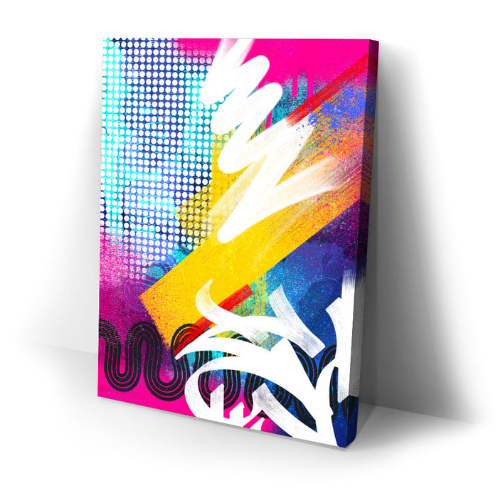 The use of vivid colors and graffiti techniques brings a modern, urban edge to the artwork, making it perfect for those who appreciate colorful abstract art with a street-art flair. Ideal for adding a pop of color and creativity to any space, this piece is a celebration of the bold and expressive nature of graffiti and abstract wall art.