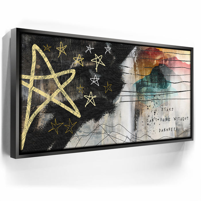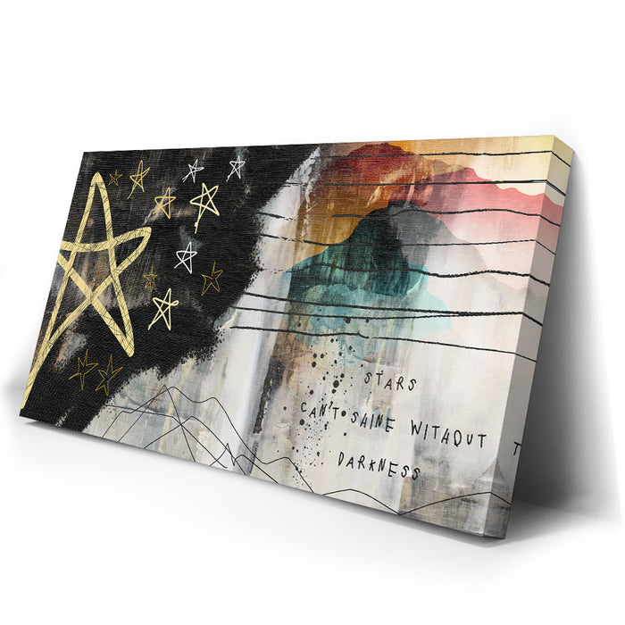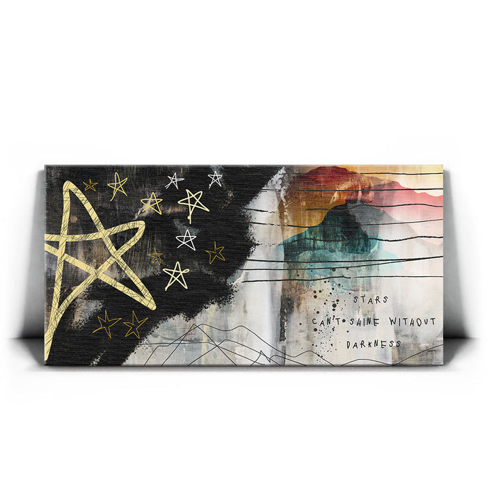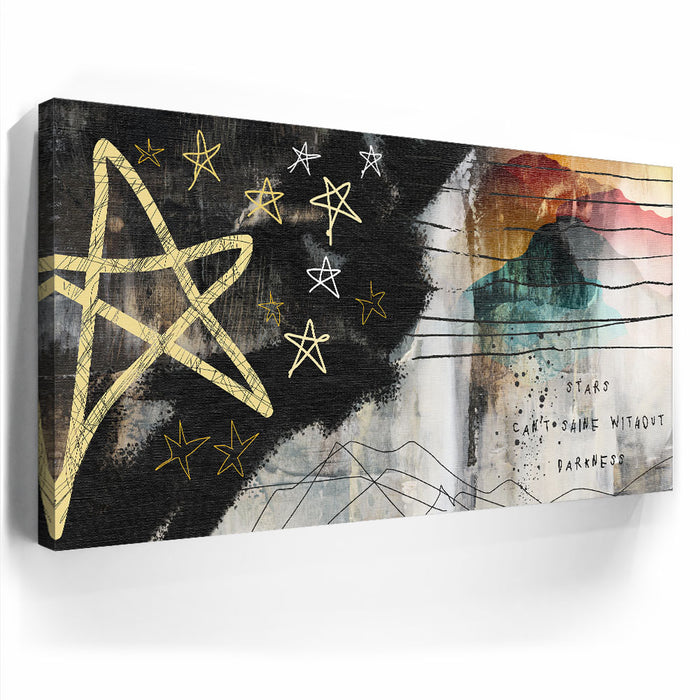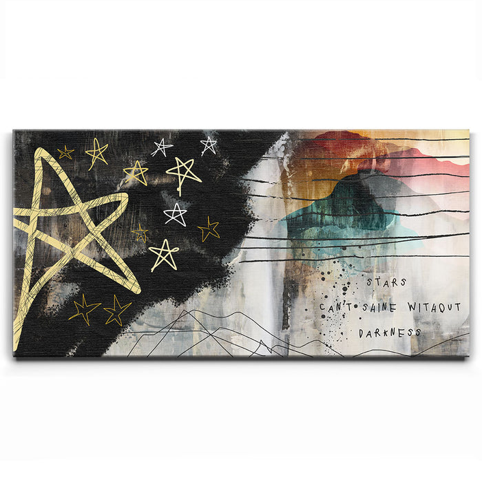 This artwork is perfect for anyone seeking inspirational art that blends modern street style with a deep, motivating message. Ideal for fans of Basquiat-style art, "Stars Can't Shine Without Darkness" brings a thought-provoking and energetic presence to any room, reminding us that light often follows the darkest times.