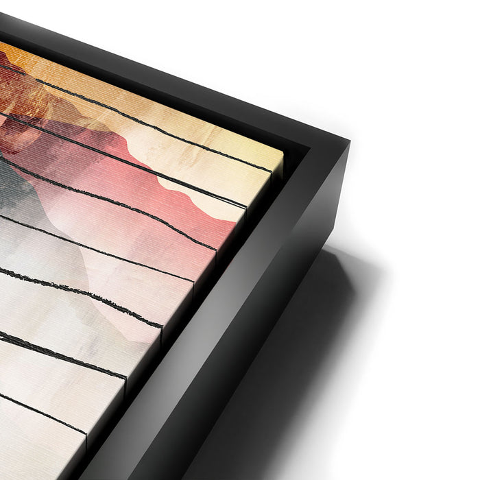 Our canvases undergo meticulous hand-stretching over solid wood stretcher bars to prevent warping or bowing. Their rounded edges and beautifully beveled sides minimize contact with the canvas, ensuring its integrity over time. Complementing this, our floating frames create the illusion of the canvas floating, enhancing depth and sophistication in any space. Our floating frames are hand built and cut to specification and held together with adhesive, metal brackets and industrial strength adhesive.