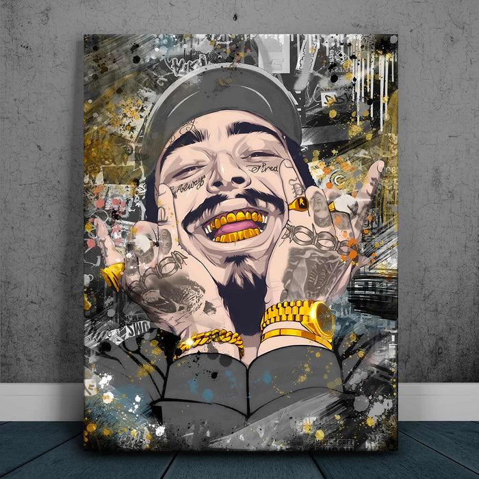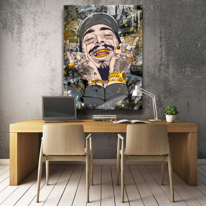 Inspired by Post Malone's iconic image and the energy he brings to the music industry, this masterpiece captures the essence of his unique style and undeniable talent.