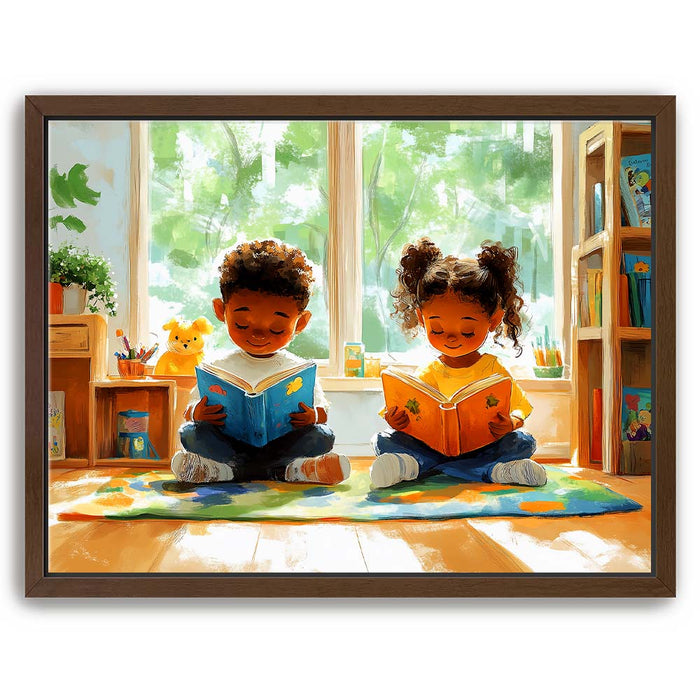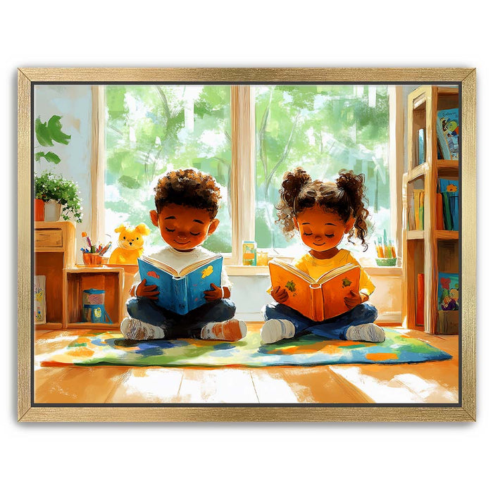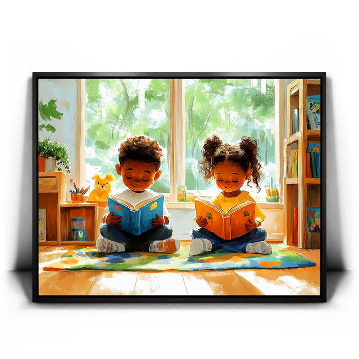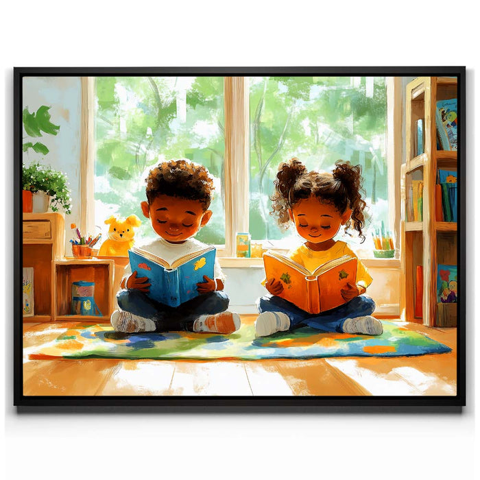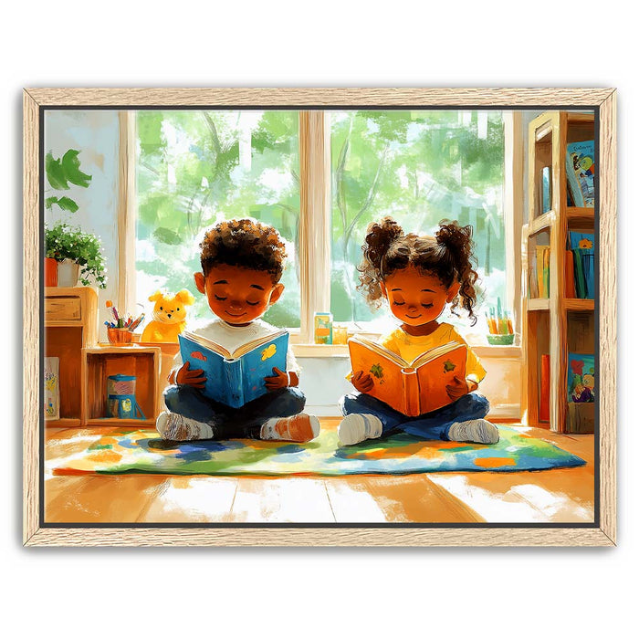 Perfect for libraries, classrooms, or any space celebrating the love of reading, this piece inspires imagination and learning while evoking a sense of innocence and happiness.