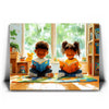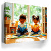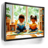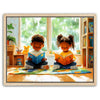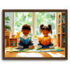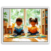 "Storytime Companions" by Kandise King radiates warmth and childhood joy. This charming artwork showcases two children engrossed in books, surrounded by vibrant colors, natural light, and playful details like a stuffed toy and cozy reading corner. The piece captures the simple pleasures of shared moments and the magic of storytelling.
