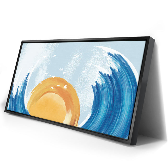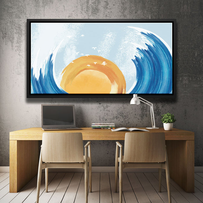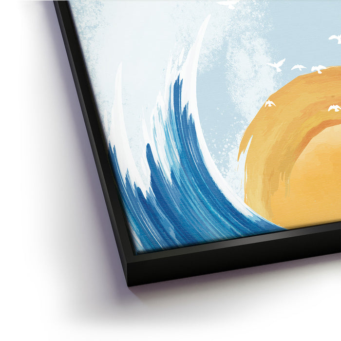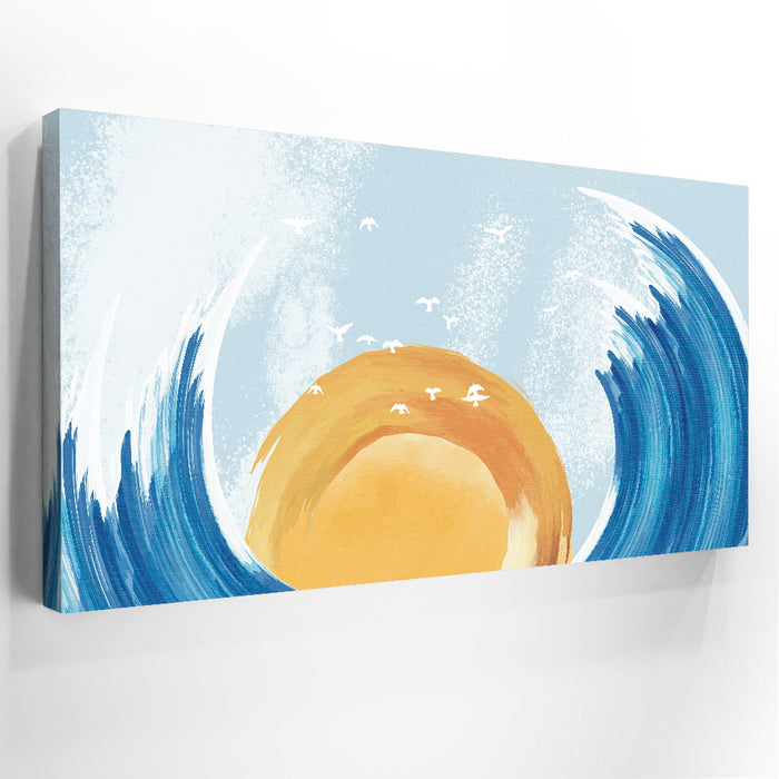 Perfect for beach lovers and fans of abstract wall art, "Sunrise Swell" adds a touch of tropical charm to your living room, bedroom, or office. Let the colors of the ocean sunrise and the energy of paradise birds transform your space into a serene coastal escape.