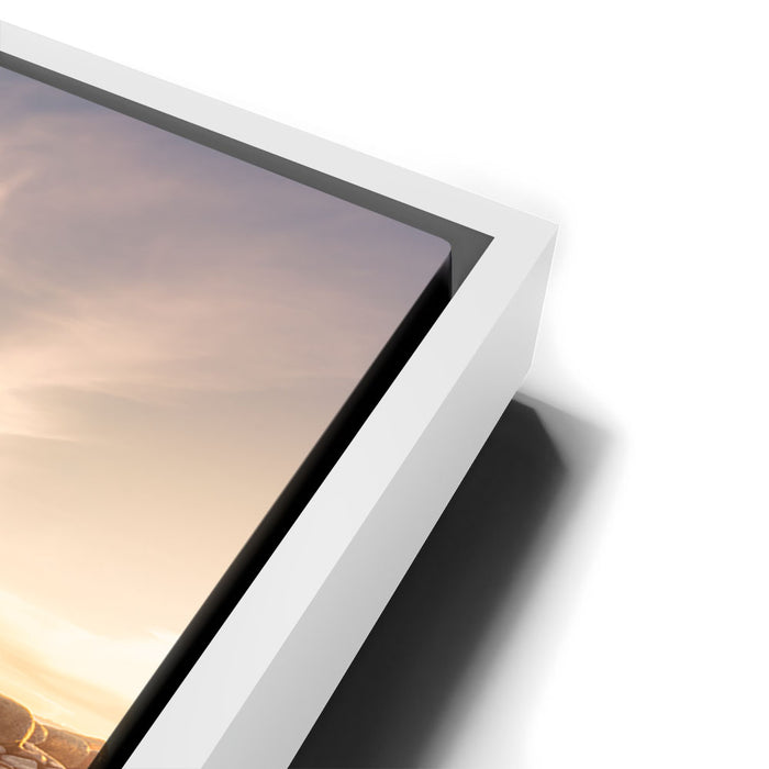 When you receive your order it will arrive pre-installed with industrial sawtooth coated metal hooks so it’s ready to hang right out of the box. Our handmade floating frames, available in various thickness options, add a touch of sophistication and come ready to hang right out of the box with a high quality wire hangar.