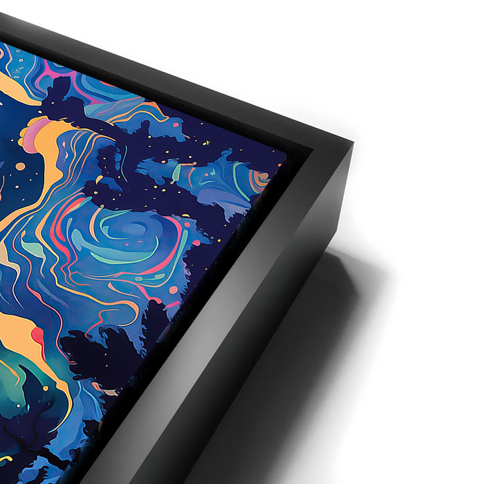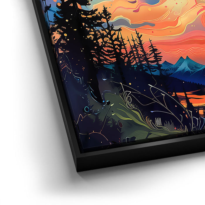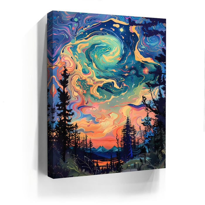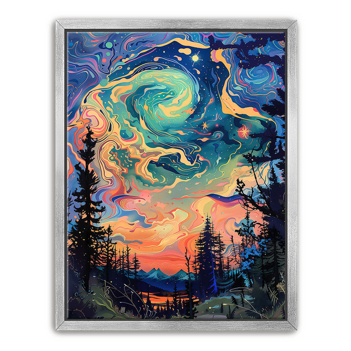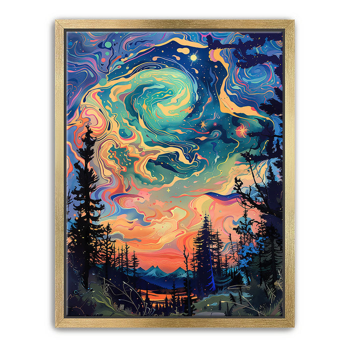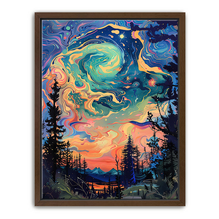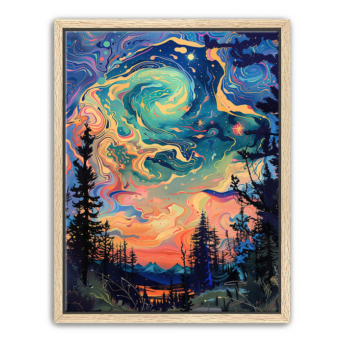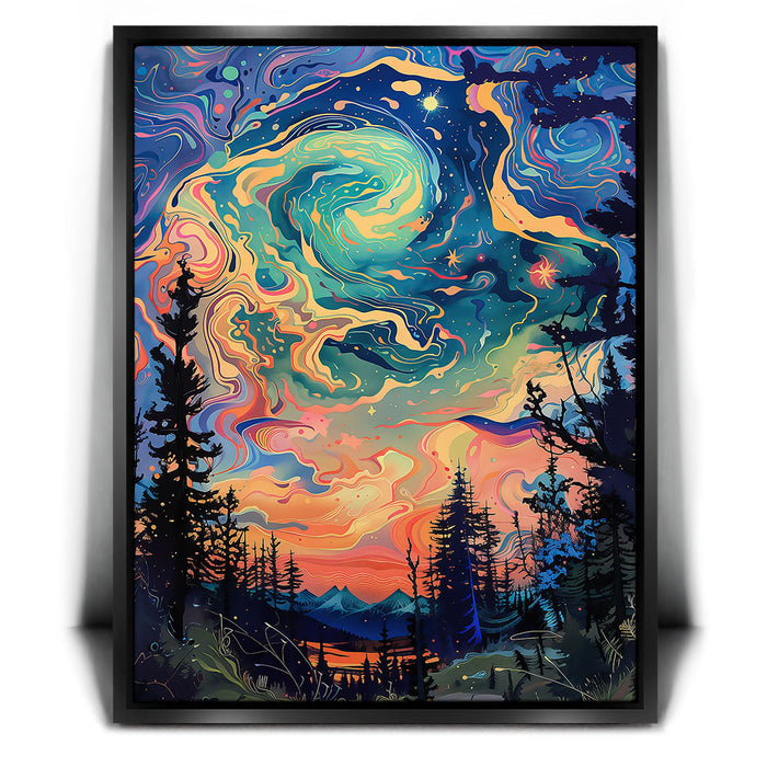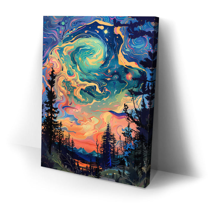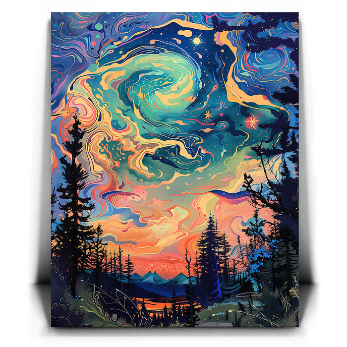 This stunning artwork is perfect for lovers of vibrant landscapes and cosmic-inspired designs. Ideal for adding a sense of wonder and energy to your home, office, or creative space, it invites viewers to lose themselves in its intricate details and captivating hues.