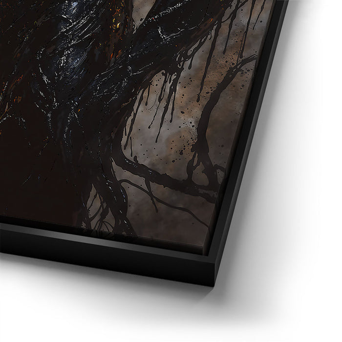This artwork is perfect for fans of surrealism and those drawn to themes of duality and transformation. "Tangled in Darkness" stands as a bold statement piece, ideal for modern spaces, gaming rooms, or collections centered on digital fantasy art.