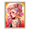 Radiating warmth and elegance through its captivating color palette and detailed design, this artwork speaks to themes of self-expression and the transformative power of art. "Tattooed Blossoms" is a stunning addition to any collection, perfect for those who appreciate bold, contemporary visuals infused with delicate floral motifs.