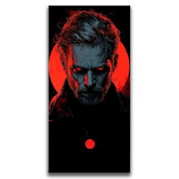 "The Blood Moon's Blood Hunter" by Midjourney.Man is an evocative portrait of a shadowy figure illuminated by the ominous glow of a blood-red moon. This artwork masterfully blends dark tones with intense crimson highlights, creating a haunting yet magnetic depiction of power and mystery.