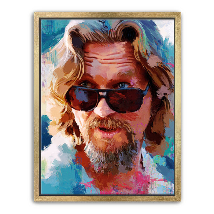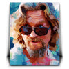 The use of bold colors and dynamic brushstrokes adds a modern, artistic twist to the classic image, making it perfect for fans of The Big Lebowski and 90's cinema. This artwork is ideal for adding a touch of pop culture nostalgia to any space, celebrating one of the most iconic characters in movie history.