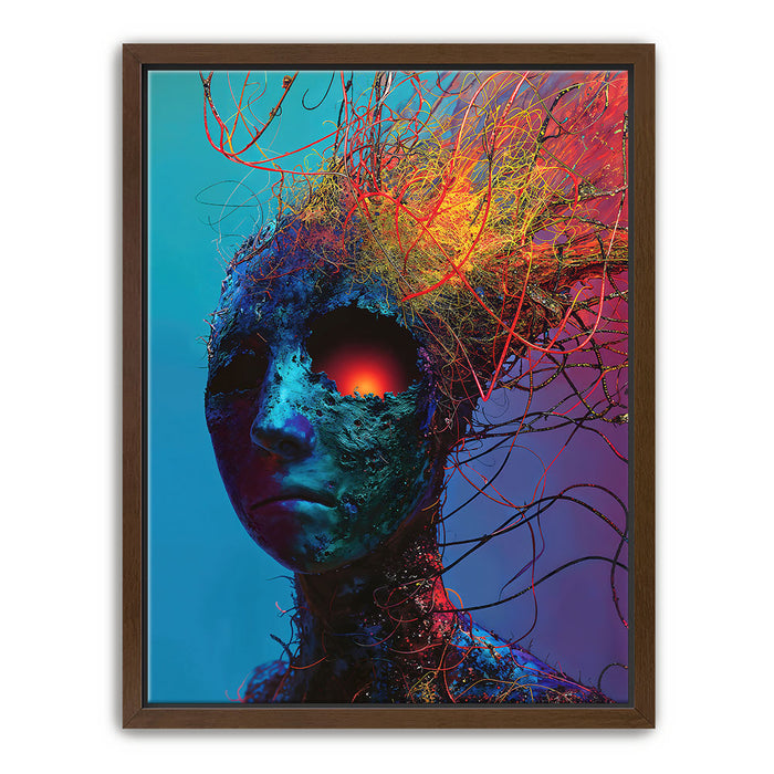 "The Ember Within" by Midjourney.Man is a captivating portrayal of inner fire and resilience. This surreal artwork features a figure with glowing, fiery eyes, entwined with vibrant organic tendrils that seem to pulse with life. The interplay of deep blues and radiant reds emphasizes the contrast between the calm exterior and the blazing intensity within.