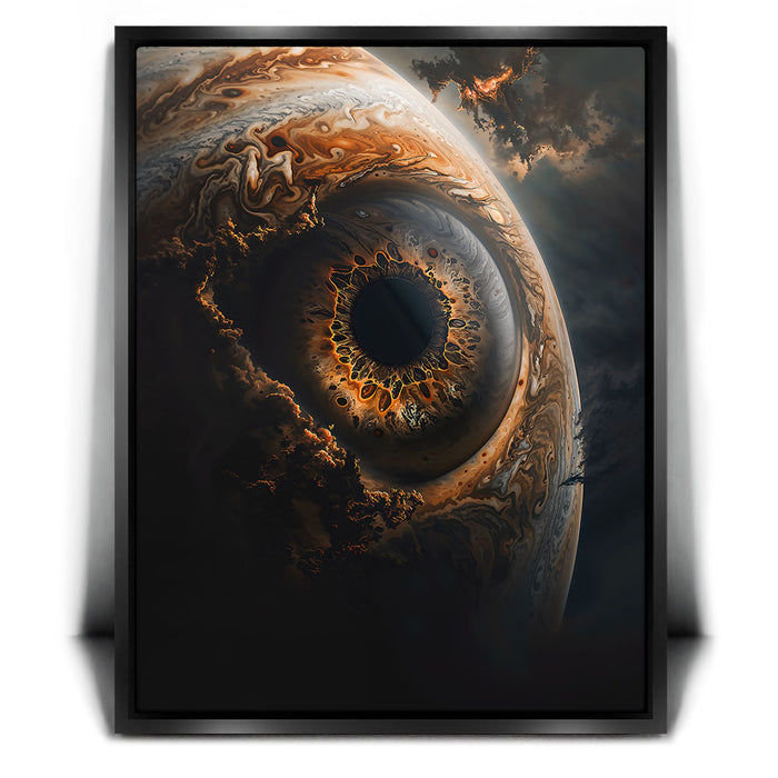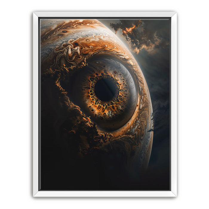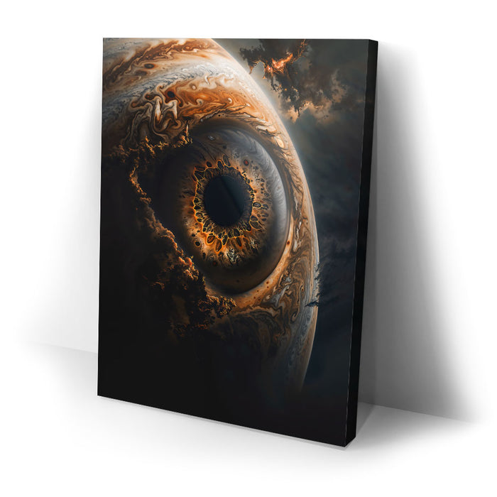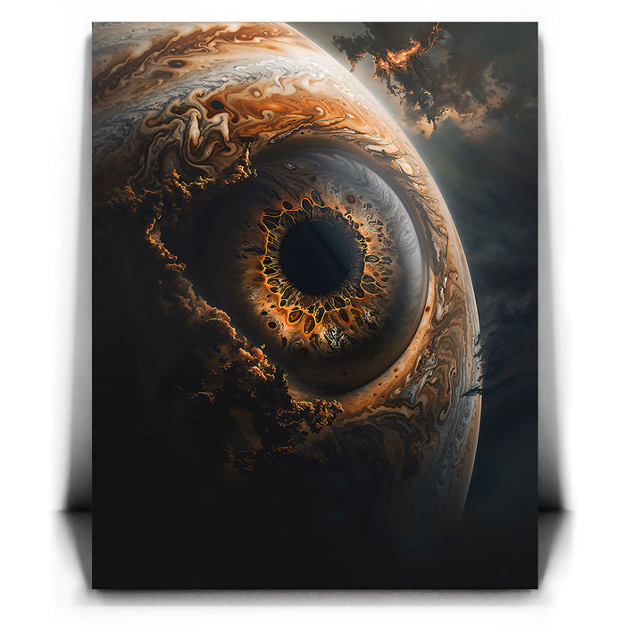 This artwork invites the viewer to contemplate the mysteries of the universe, blending science and surrealism into a breathtaking visual experience. Ideal for astronomy enthusiasts and lovers of cosmic art, "The Eye of Jupiter" brings the beauty of the solar system to life in a captivating way.