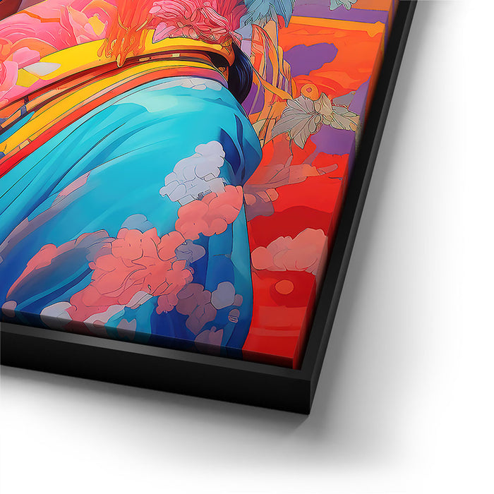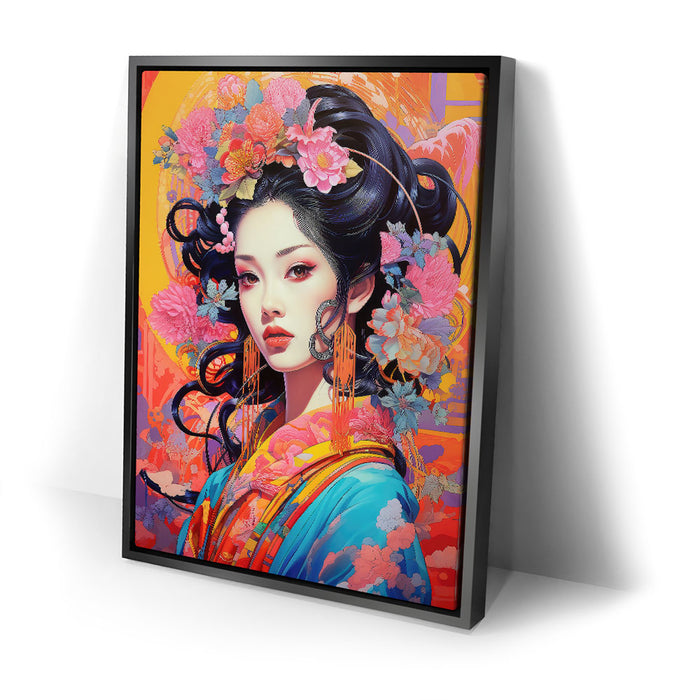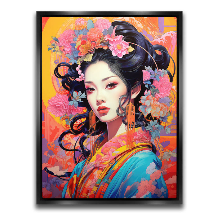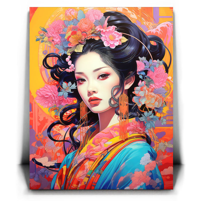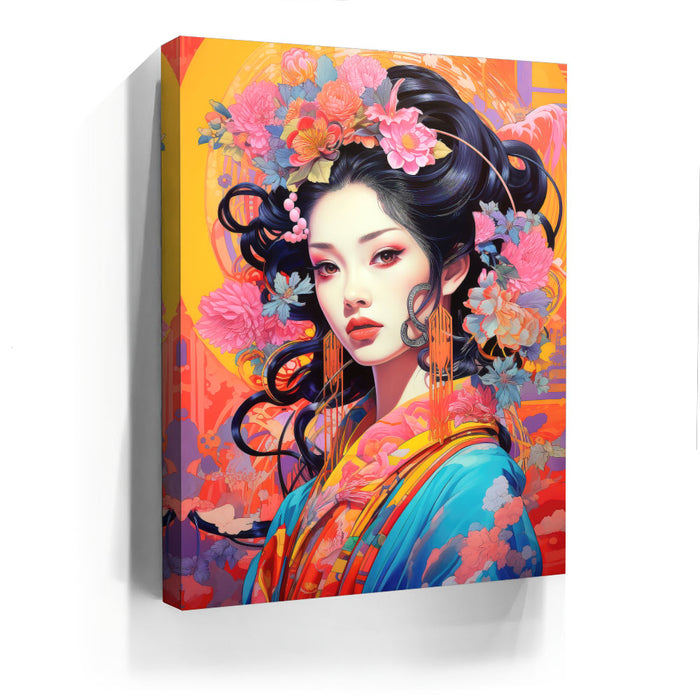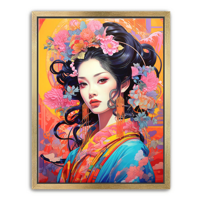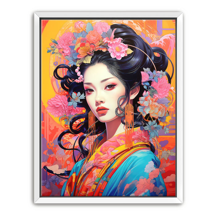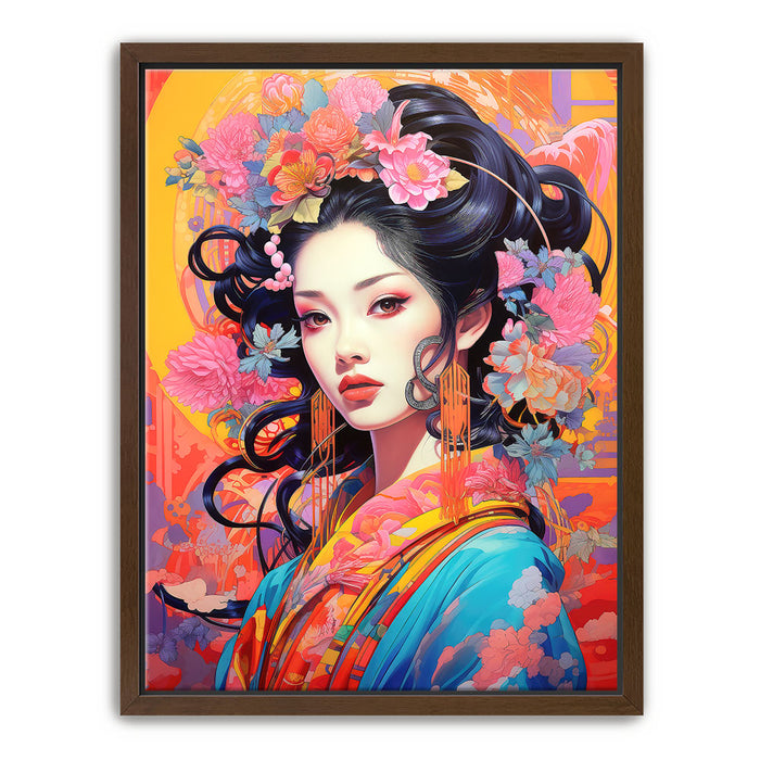 This artwork is ideal for those who appreciate both traditional and modern art styles. "The Flowered Monarch" is a celebration of beauty, femininity, and the natural world, making it a captivating addition to any art collection.