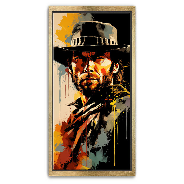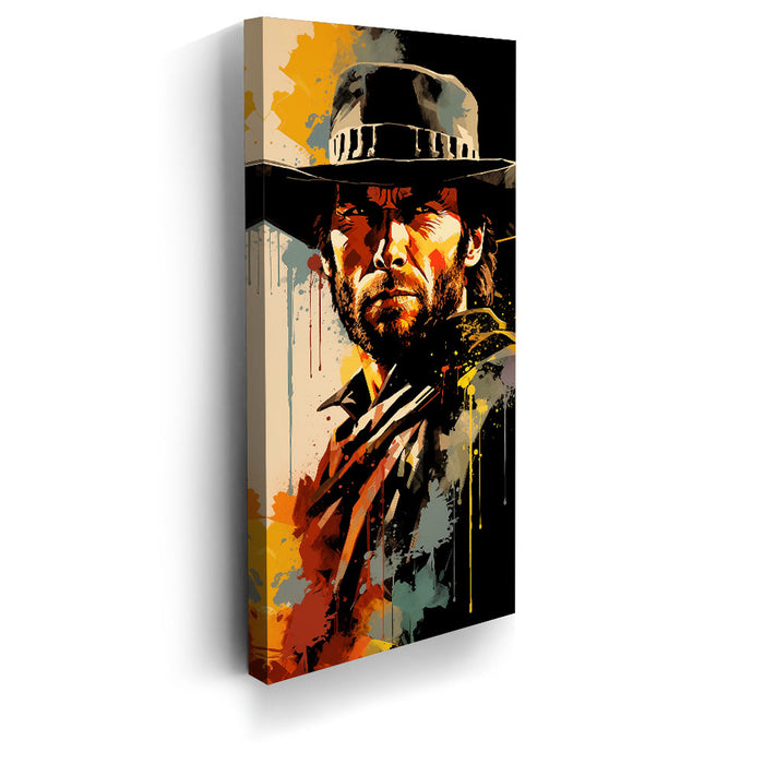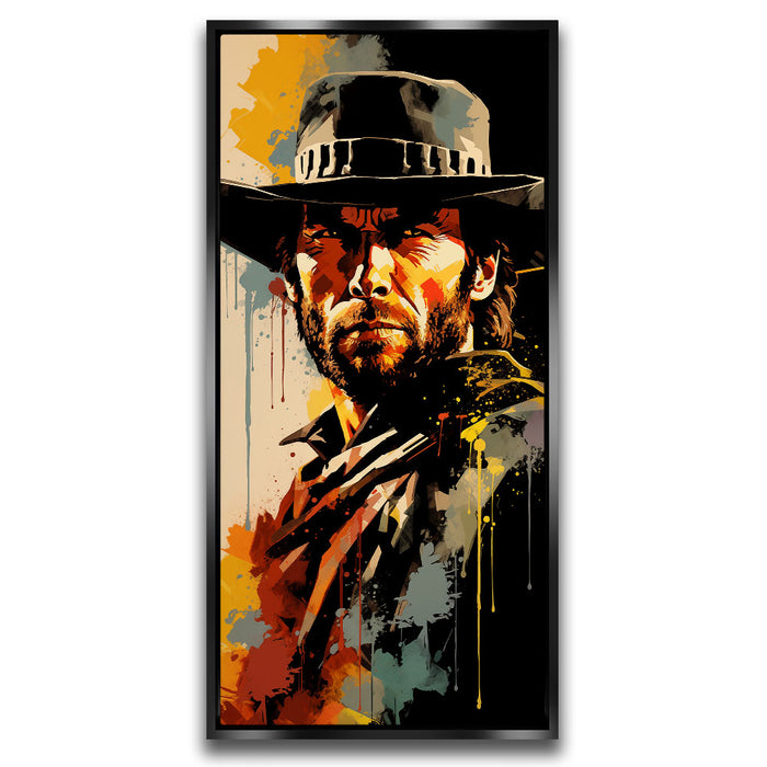 Ideal for fans of classic movies and abstract art alike, this artwork blends cinematic nostalgia with contemporary artistic techniques. Perfect for any space, it brings a touch of the wild west with a modern twist.