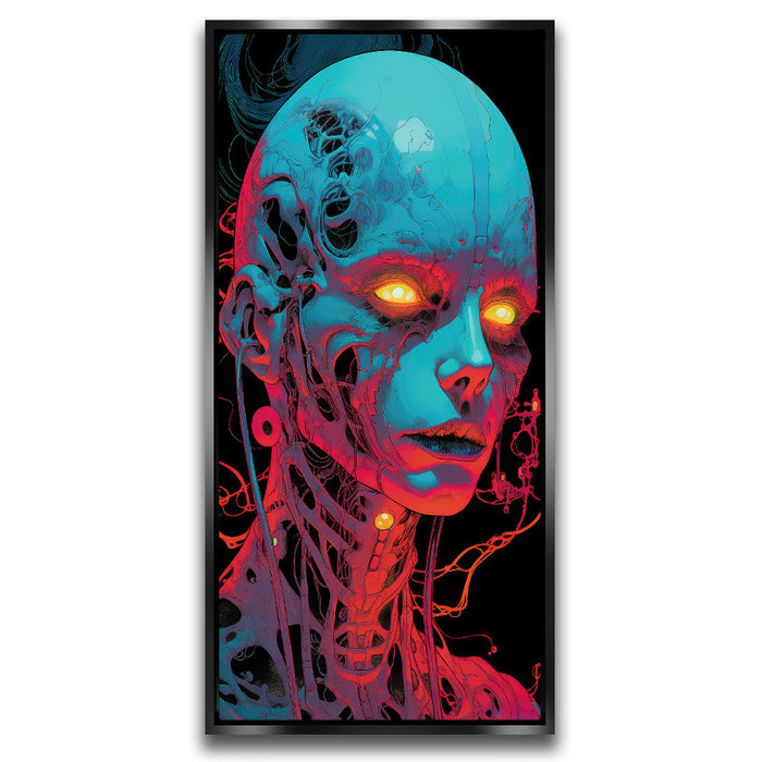 Perfect for lovers of science fiction and digital art, "The Neon Prophet" stands out as a bold statement piece for modern interiors or galleries. Its dynamic color scheme and intricate details make it an ideal addition to spaces celebrating creativity, technology, and avant-garde design.