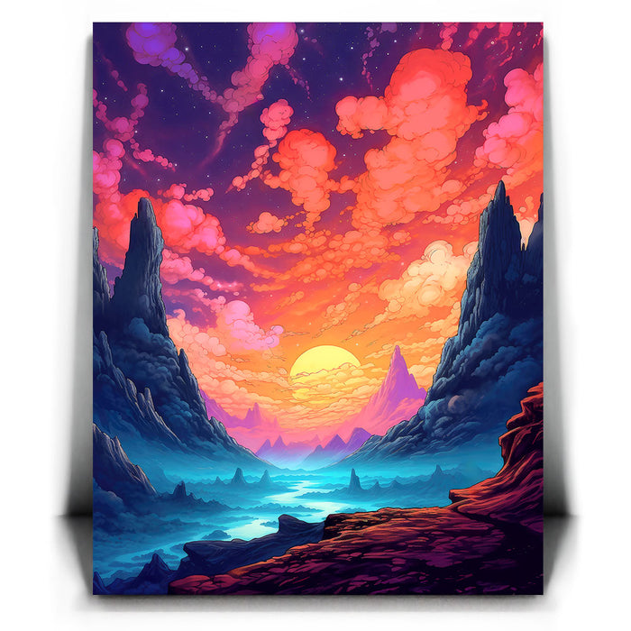 This artwork is perfect for fans of fantasy landscapes and vibrant, dreamlike visuals. "The Path Less Taken" captures the essence of exploration and the beauty of uncharted worlds, making it an inspiring addition to any art collection.