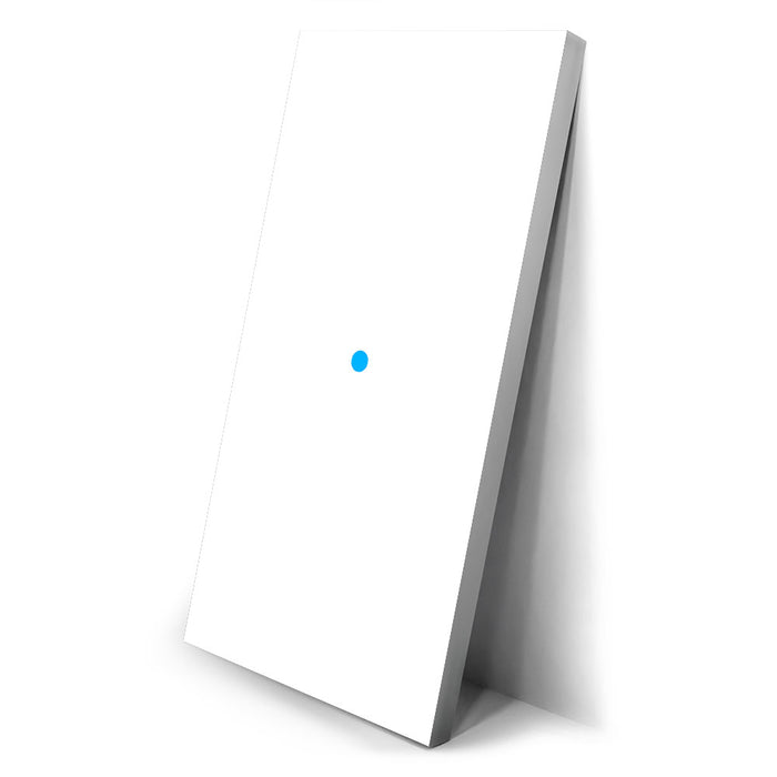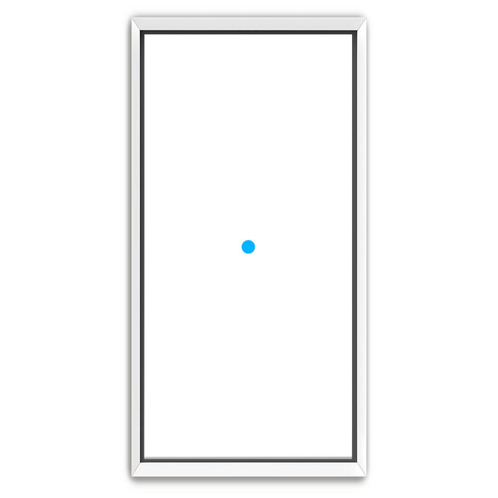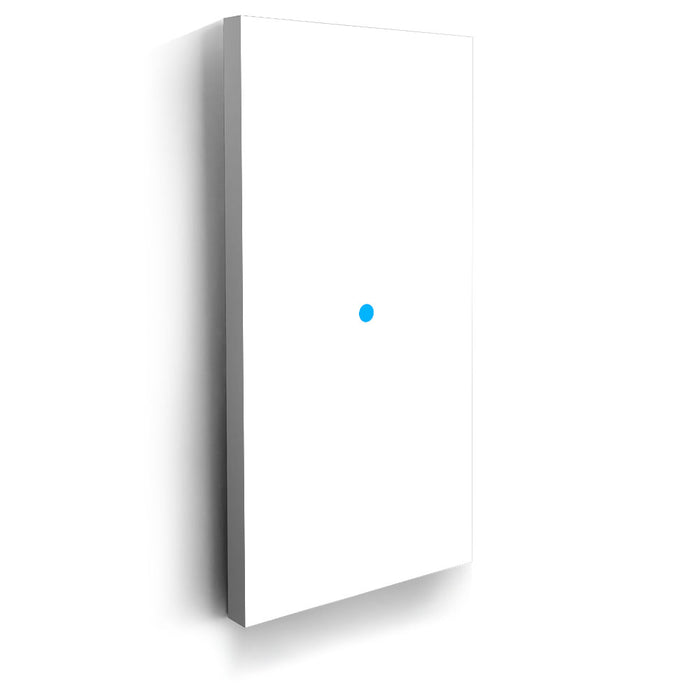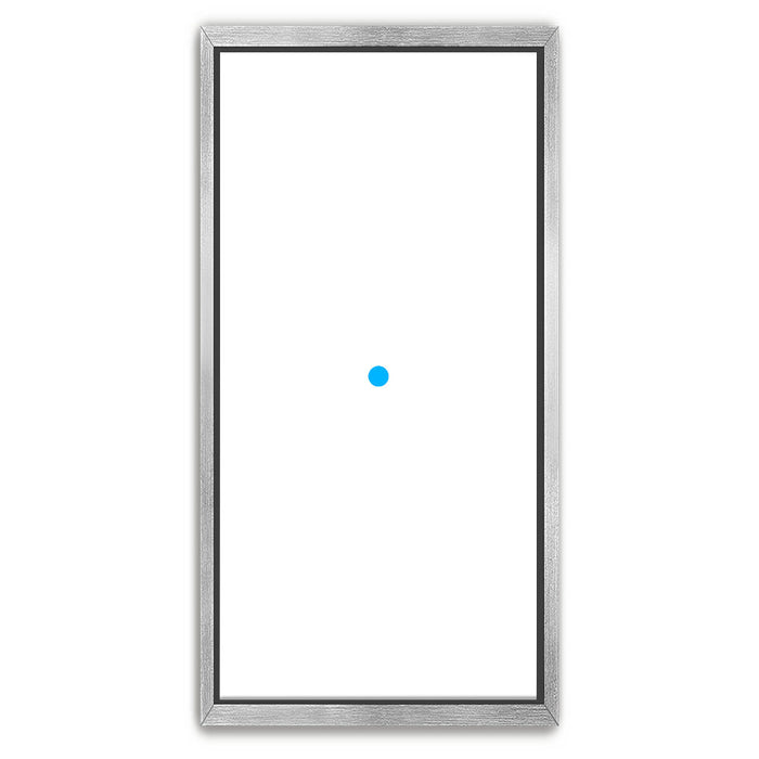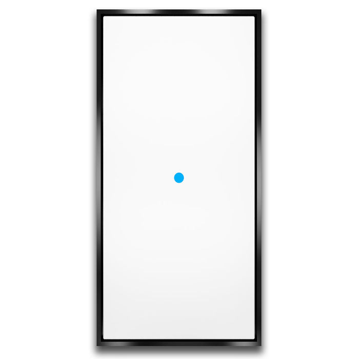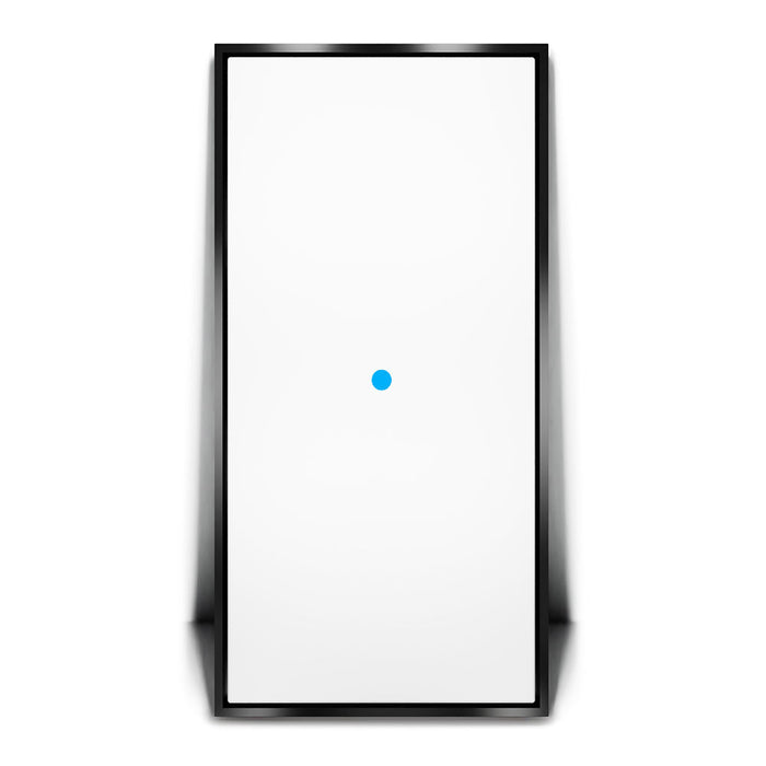 This minimalist abstract artwork titled "The Singularity" features a solitary blue dot centered against a stark white background, creating a powerful visual statement. The piece is a study in simplicity and contrast, emphasizing the isolation of the blue dot within the vastness of the white space. The orientation of the artwork is tall and portrait-style, making it a striking and thought-provoking addition to any modern space.