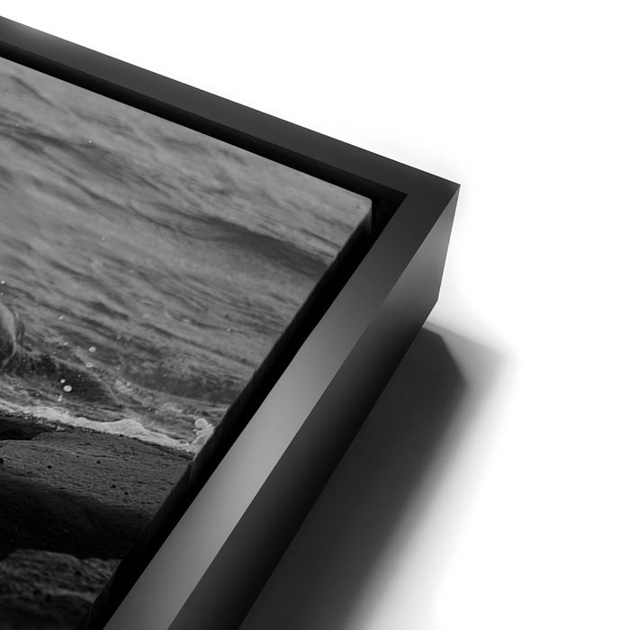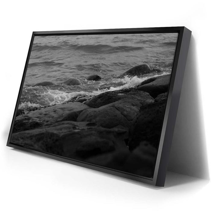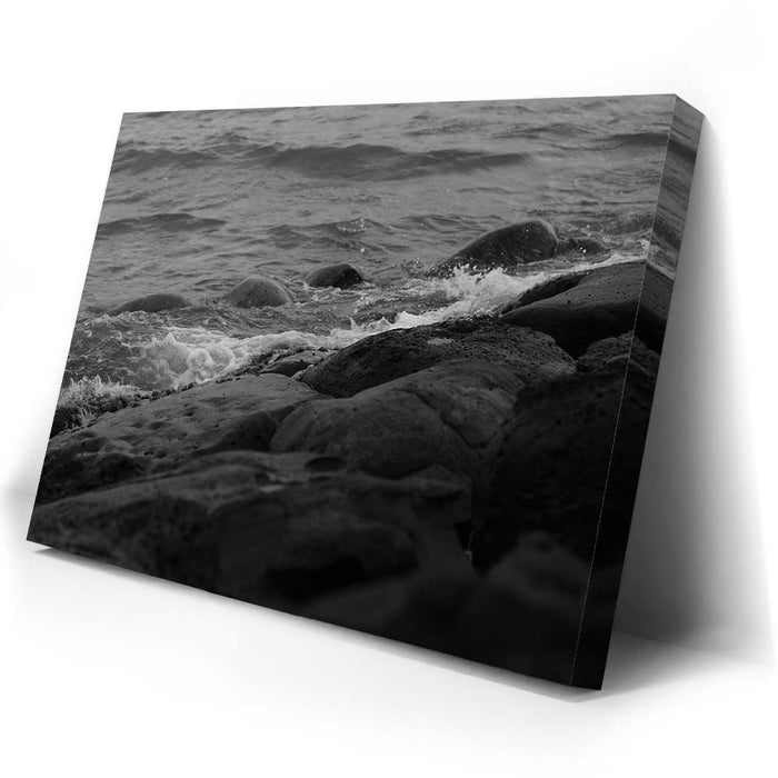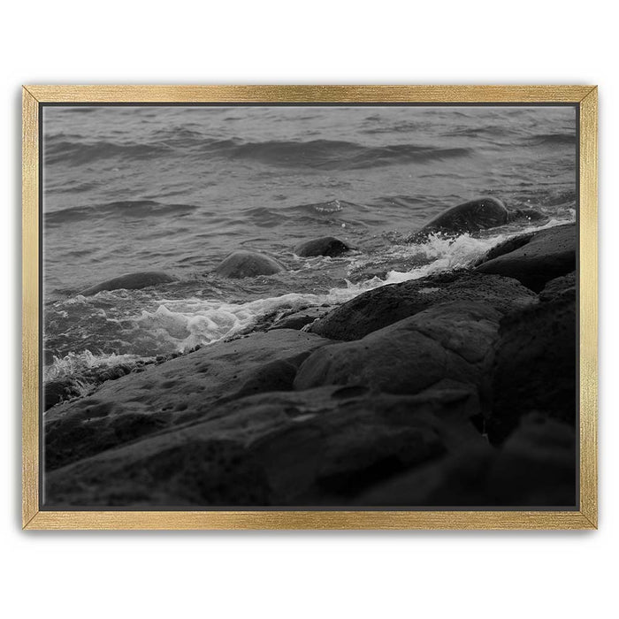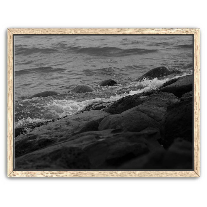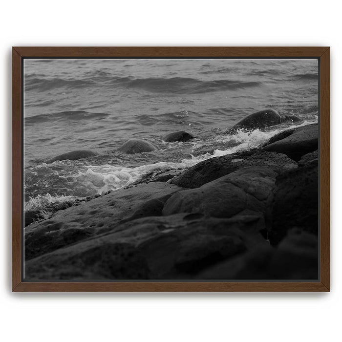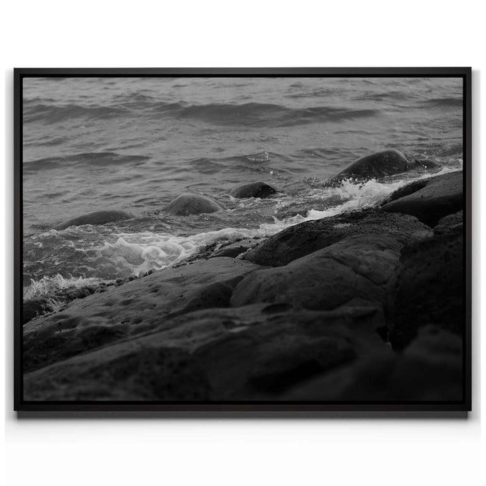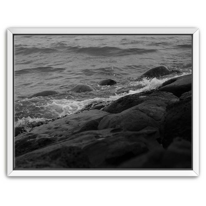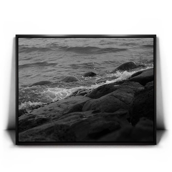 The monochromatic tones highlight the textures of the rocks and the movement of the water, offering a timeless and soothing addition to any room. Perfect for those who love the ocean and the peaceful energy it brings, this piece is a beautiful reminder of the natural wonders of Hawaii's coastlines.