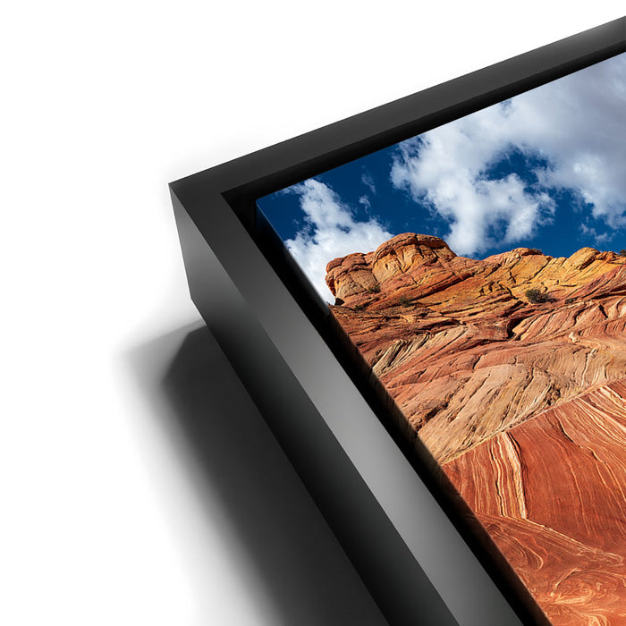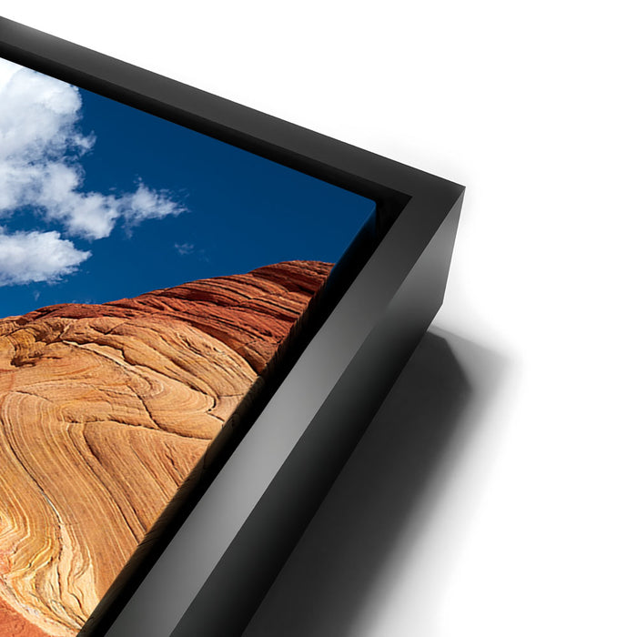 When you receive your order it will arrive pre-installed with industrial sawtooth coated metal hooks so it’s ready to hang right out of the box. Our handmade floating frames, available in various thickness options, add a touch of sophistication and come ready to hang right out of the box with a high quality wire hangar.
