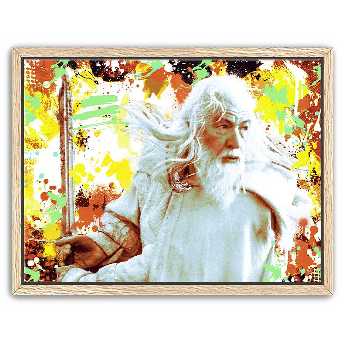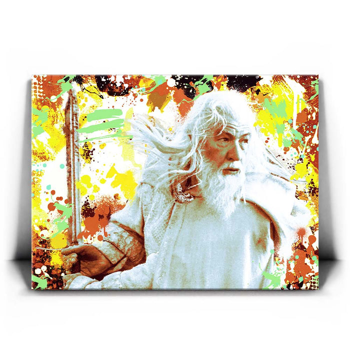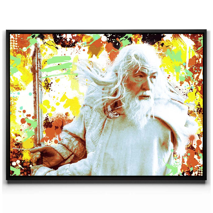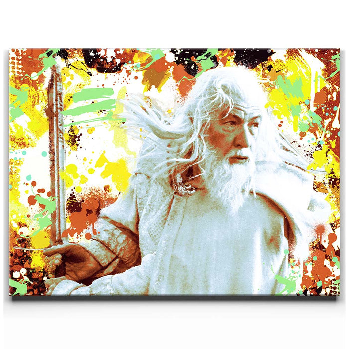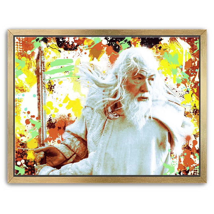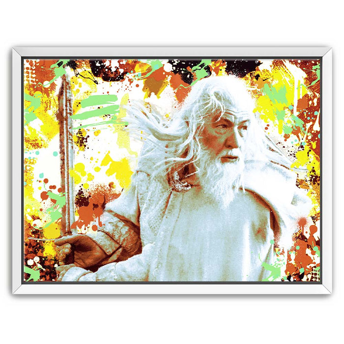 "The White Wizard" by Stella Ygris is a stunning abstract artwork inspired by the iconic wizard Gandalf from *The Lord of the Rings*. This piece features striking yellow tones, symbolizing the powerful transformation of Gandalf the Grey into Gandalf the White. With its landscape orientation and a unique blend of science fiction and fantasy, this artwork is perfect for fans of abstract art, *The Lord of the Rings*, and cinema enthusiasts looking for a bold statement piece.