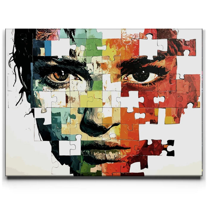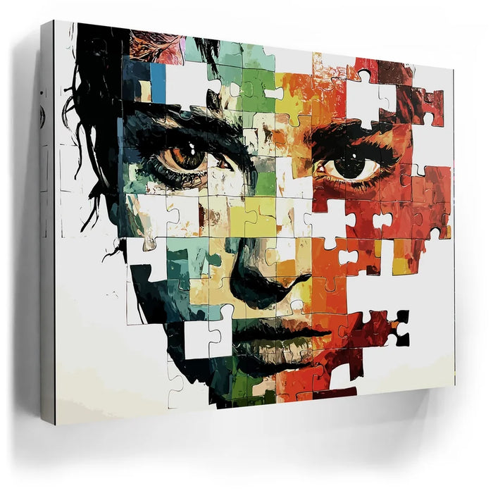 Unfinished is a striking portrayal of identity in progress — a face constructed from puzzle pieces, vivid with color yet incomplete. Each missing fragment represents the parts of ourselves still being discovered, healed, or defined. The piercing gaze pulls the viewer inward, asking what it means to be whole in a world that’s always changing. This artwork celebrates imperfection as beauty — a reminder that the process of becoming is just as powerful as the final picture.