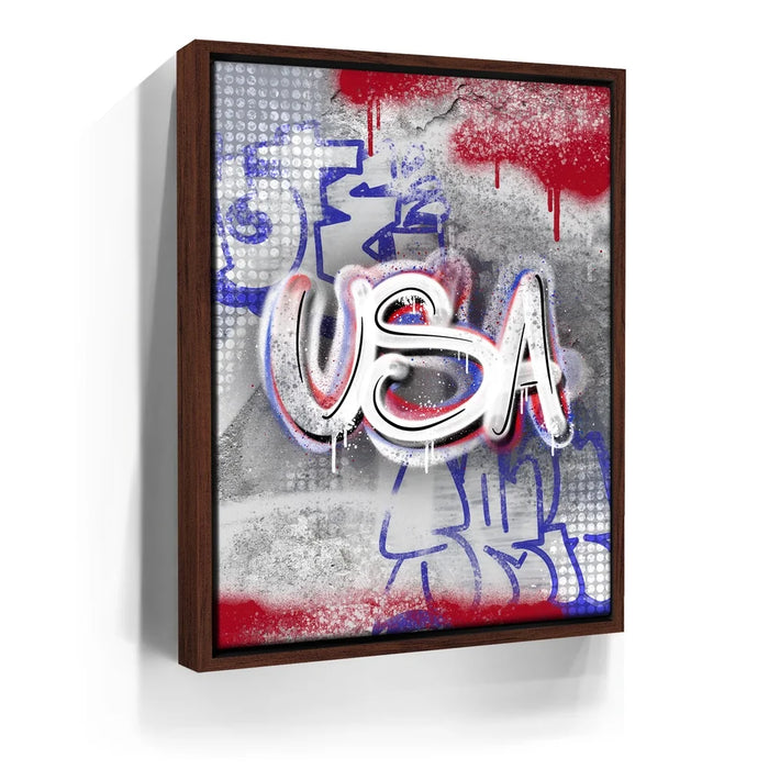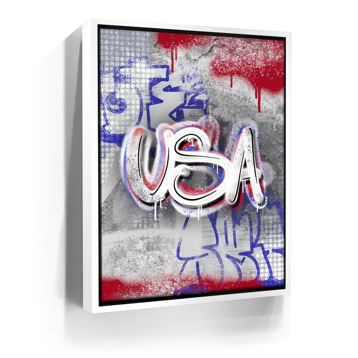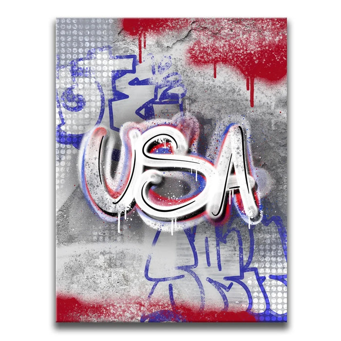 USA Graffiti explodes with patriotic energy, blending red, white, and blue spray paint into a bold urban tribute to American pride. The layered textures of street art, complete with paint drips, splatters, and stencil-style tagging, create a raw and rebellious aesthetic that captures the spirit of freedom and creativity. This artwork bridges the worlds of modern graffiti and national identity, celebrating self-expression and the power of individuality.