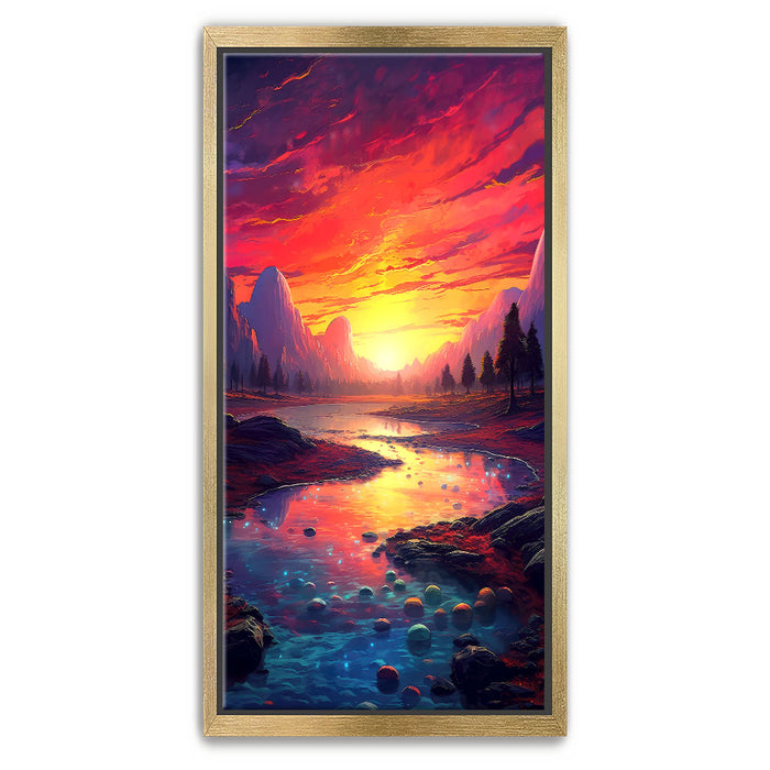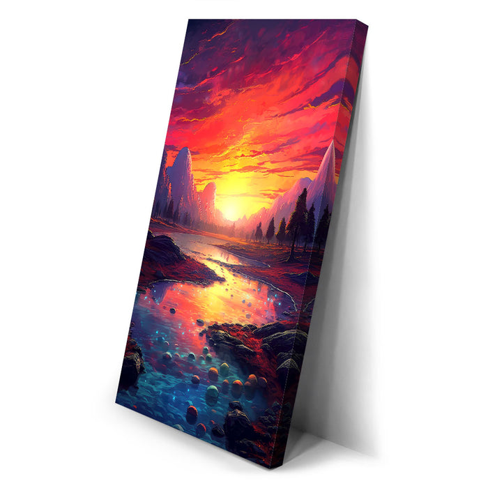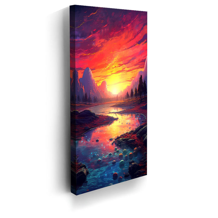 This artwork is ideal for lovers of fantasy landscapes and vivid, colorful nature scenes. "Valley of Fire and Calm" captures both the intensity of nature’s beauty and the serene peace found within it, making it a striking and contemplative piece for any collection.