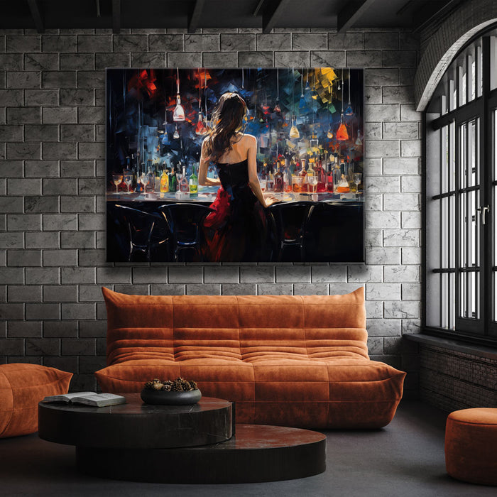Perfect for those who appreciate modern, stylized art, "Waiting For You" combines a playful mix of color pops with a dynamic portrayal of nightlife. Whether placed in a bar, lounge, or home, this piece brings life to any space with its colorful appeal and captivating subject matter. Ideal for fans of contemporary art and nightlife-inspired designs.