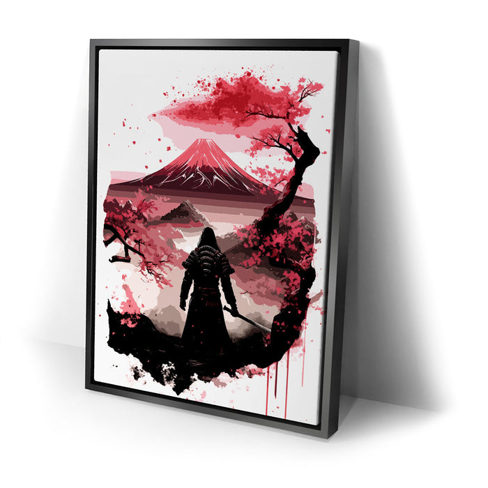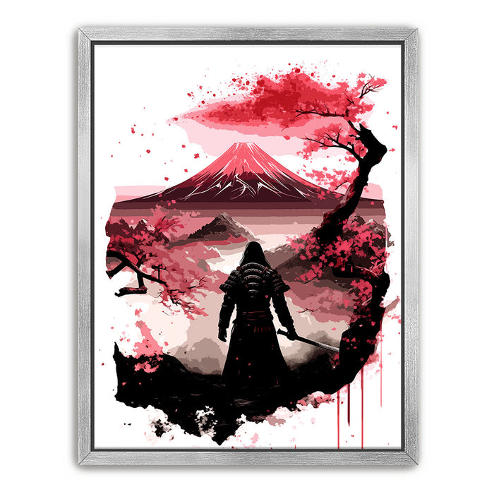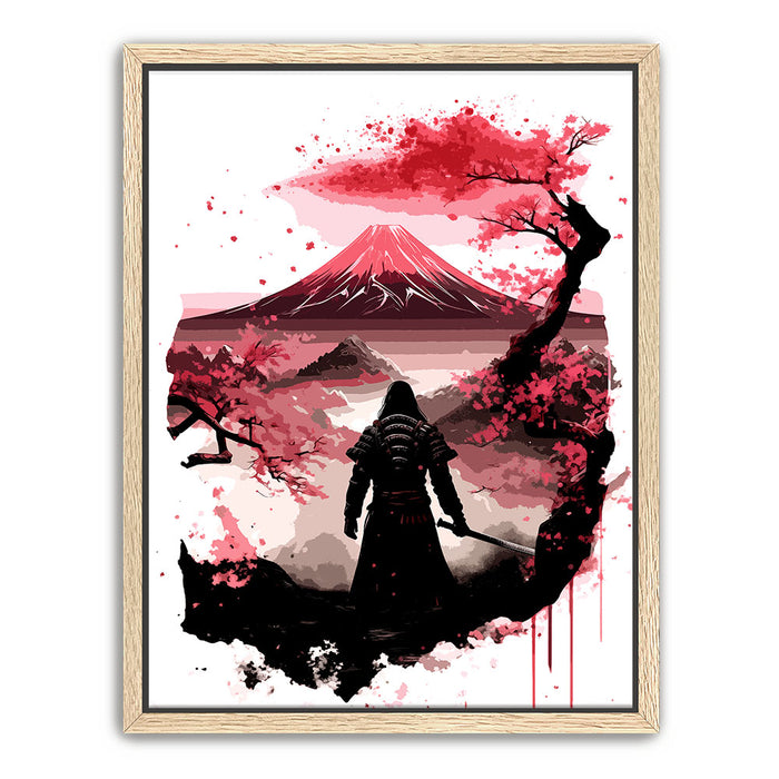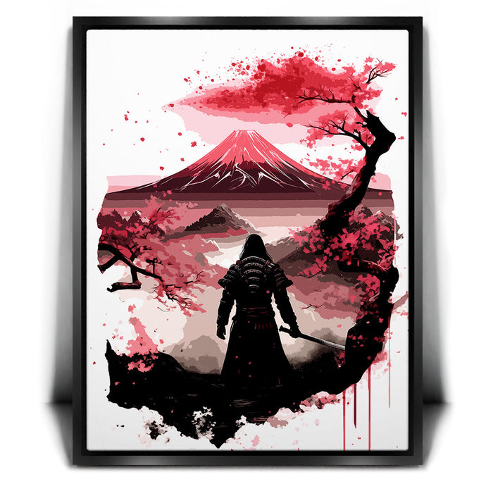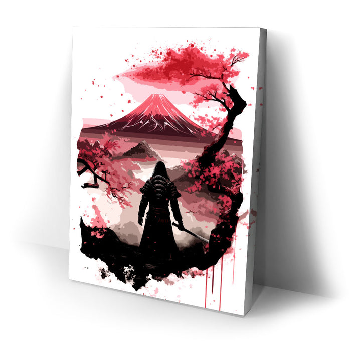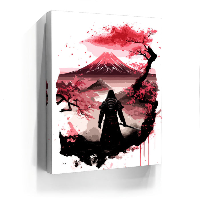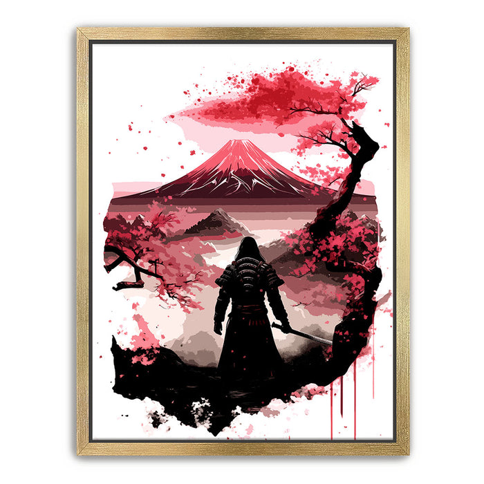 "Warrior" by g2 creative is a stunning watercolor piece that captures the strength and beauty of a samurai amidst the backdrop of Japanese mountainscapes. The artwork features a warrior standing proud near the peak of Mount Fuji, surrounded by delicate Japanese cherry blossoms. The use of ink wash and vibrant colors creates a powerful and serene atmosphere, combining traditional Japanese elements with a modern artistic style.