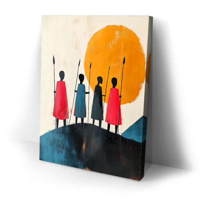 This piece is perfect for those who appreciate abstract art with a narrative depth. Its clean lines, warm color palette, and evocative symbolism make it an eye-catching centerpiece for modern or eclectic spaces, resonating with timeless stories of courage and community.