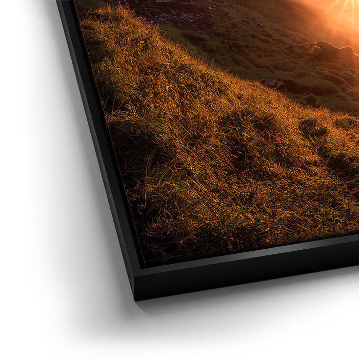 When you receive your order it will arrive pre-installed with industrial sawtooth coated metal hooks so it’s ready to hang right out of the box. Our handmade floating frames, available in various thickness options, add a touch of sophistication and come ready to hang right out of the box with a high quality wire hangar.