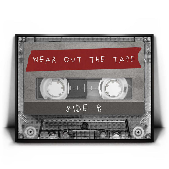 "Wear Out The Tape - Side B" is a nostalgic tribute to the analog era, capturing the essence of vintage cassette tapes and the enduring love for music. Featuring a classic tape design with a handwritten label, this artwork embodies the passion and dedication of true music lovers who played their favorite songs on repeat. Ideal for anyone with an appreciation for retro aesthetics, this piece makes a perfect addition to music-themed collections or spaces that celebrate the timeless joy of analog culture.