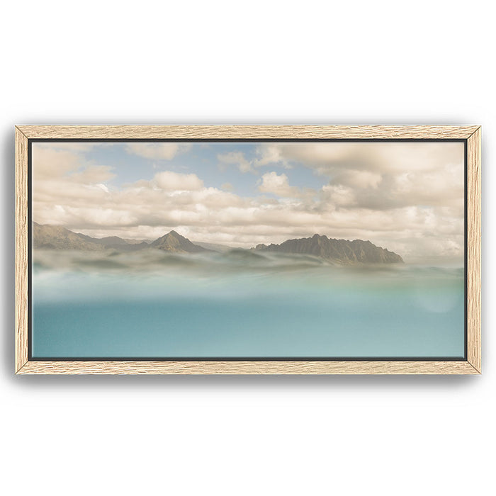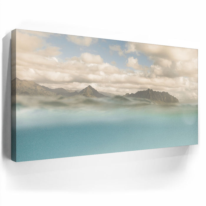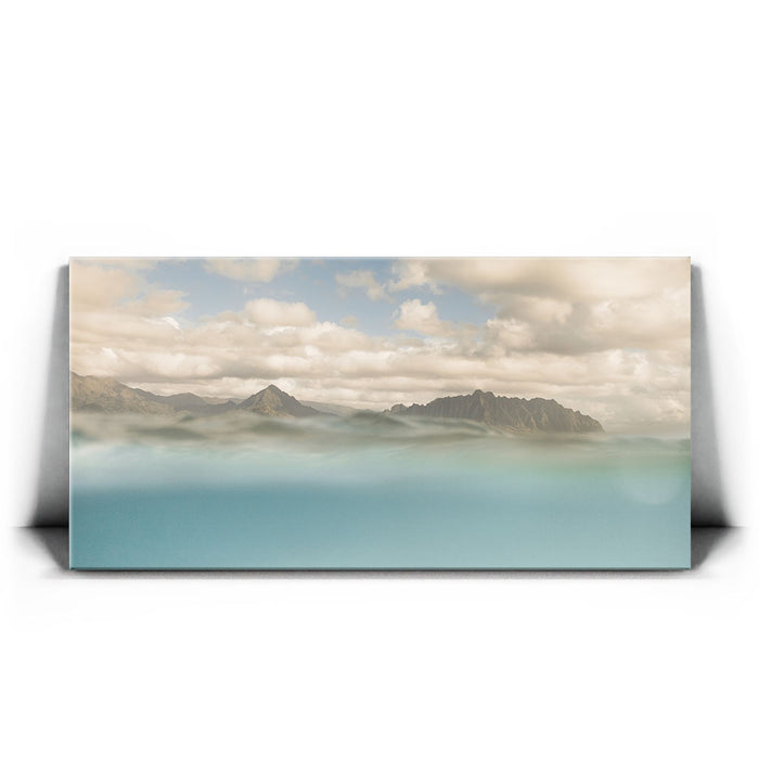The blend of earth, sea, and sky creates a harmonious and peaceful scene, making it an ideal addition to any space that seeks to evoke the calming and awe-inspiring beauty of nature. Perfect for those who love landscapes and the unique charm of Hawaii, this artwork is a timeless reminder of the natural wonders where mountains and ocean unite.