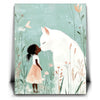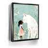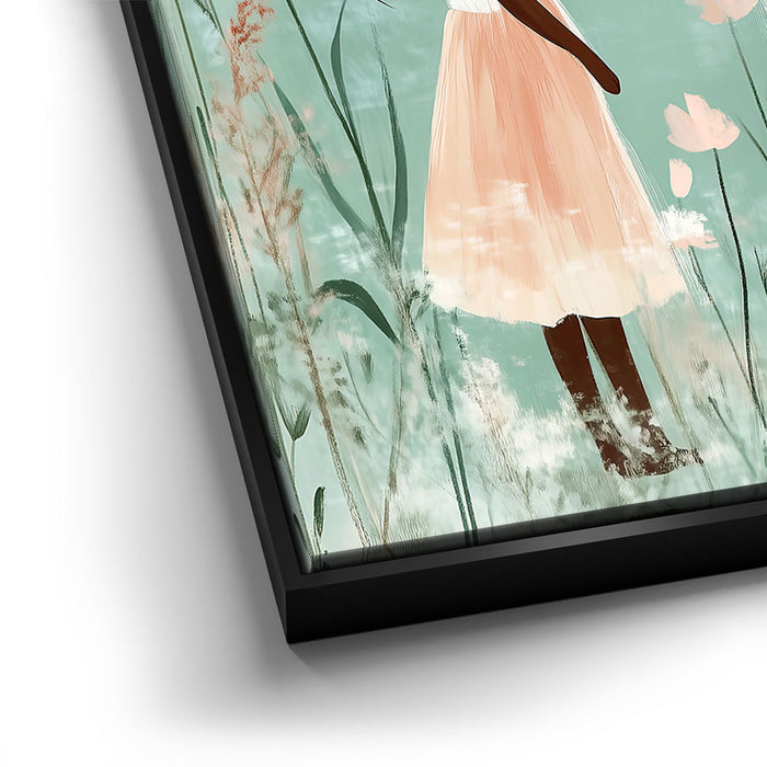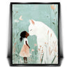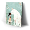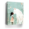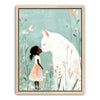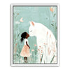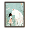 "Whiskers and Wishes" by Kandise King is a tender and enchanting artwork that depicts a serene connection between a young girl and a gentle, oversized white cat. Set against a soft pastel background adorned with delicate wildflowers, this piece exudes warmth, innocence, and the magic of companionship. The muted tones and whimsical details make this artwork a visual delight.