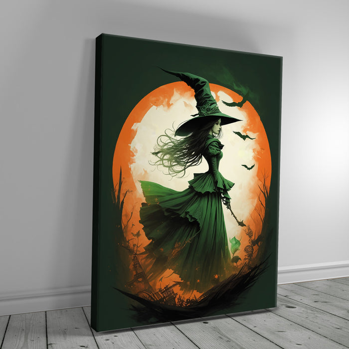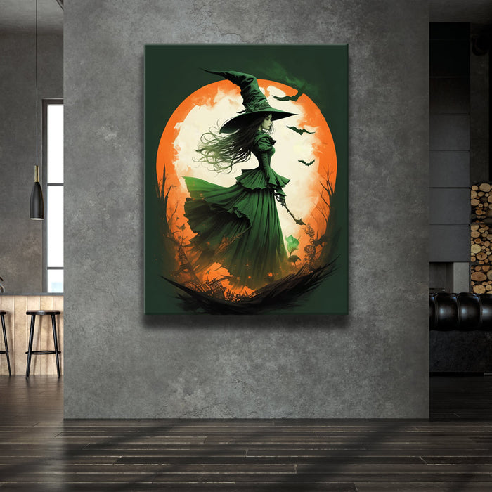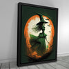 "Witch II" by Stella Ygris is a captivating portrait of a mysterious and enchanting woman dressed in a classic witch hat, set against a hauntingly beautiful backdrop of trees and moonlight. The eerie atmosphere of this artwork evokes the spirit of Halloween, blending elements of witchcraft, the supernatural, and gothic beauty.