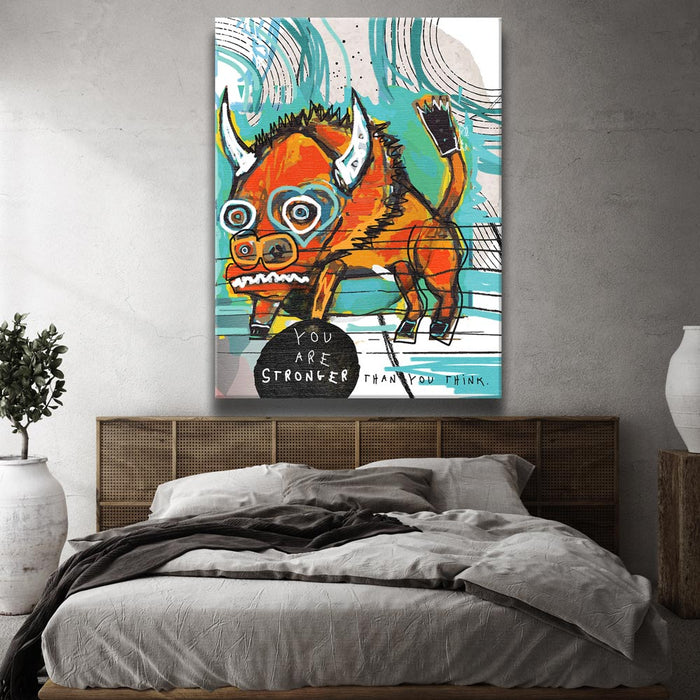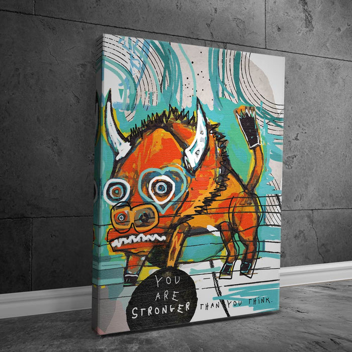 Perfect for any space in need of a motivating message, this artwork brings positivity and empowerment. With its colorful abstract composition and inspirational theme, "You Are Stronger Than You Think" adds a striking, thoughtful touch to any modern office or living area.