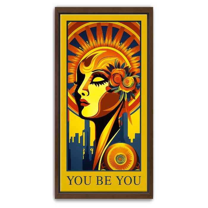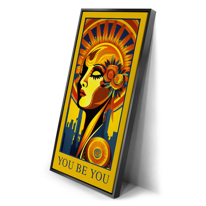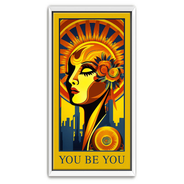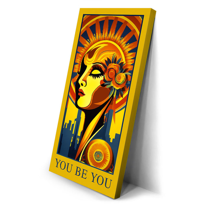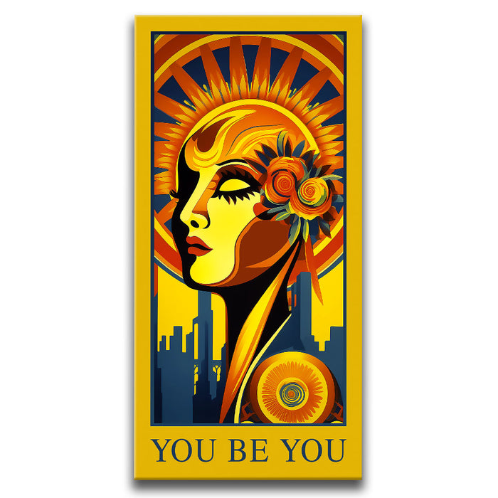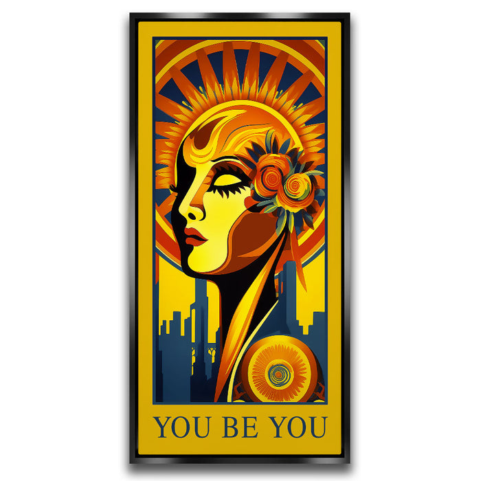 "You Be You" by G2 Creative is a vibrant and inspiring piece of typography and abstract art. Featuring a beautiful woman in a retro, colorful style, this portrait captures the essence of motivation and self-expression. The bold use of gold and striking colors creates a dynamic visual impact, while the design encourages empowerment and individuality.