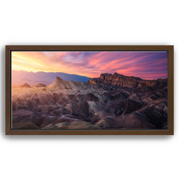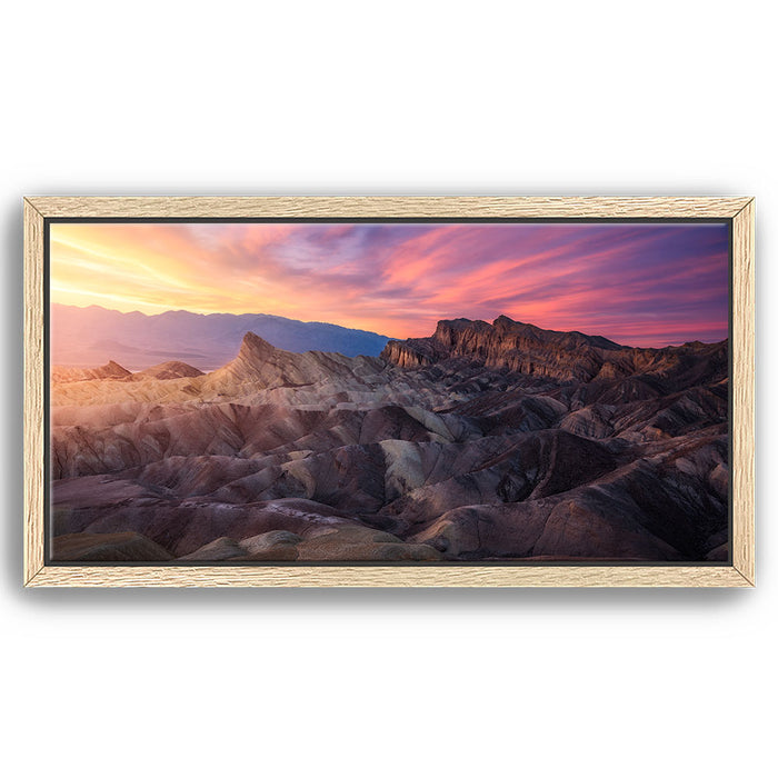 Ideal for lovers of nature and fine art photography, this piece brings the awe-inspiring landscapes of the mountain valley into your home. Whether you're drawn to the serene mountain peaks or the strikingly colorful sky, "Zabriskie Point" is a perfect addition to any space, celebrating the majestic beauty of nature's landscapes.